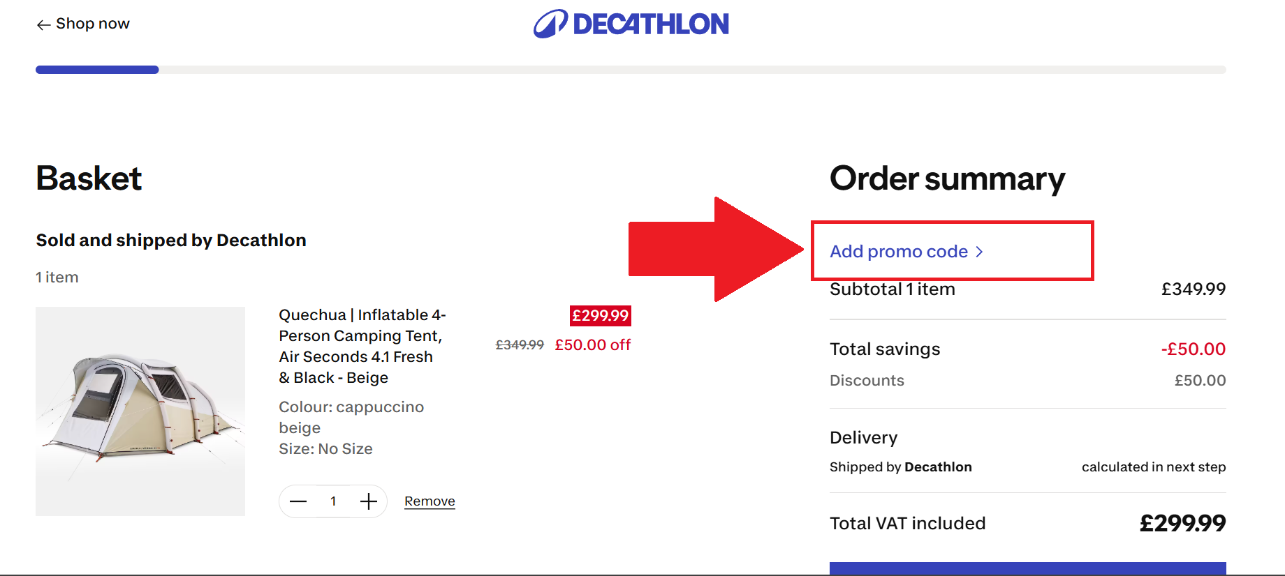 - Head to the Decathlon website, do your shopping, add everything to your basket and head to checkout.