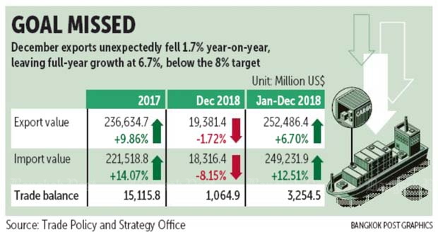 Ghanyapad Tantipipatpong, chairwoman of the Thai National Shippers' Council (TNSC), said the December drop in exports was unexpected.