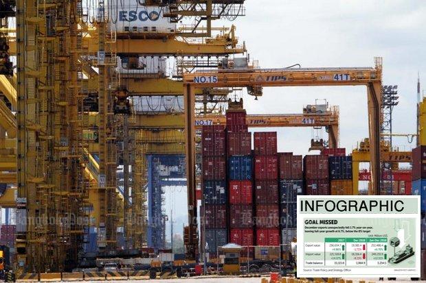 The Commerce Ministry reported Monday that customs-cleared exports unexpectedly shrank by 1.7% year-on-year last month with a value of US$19.4 billion after contracting 0.95% in November.