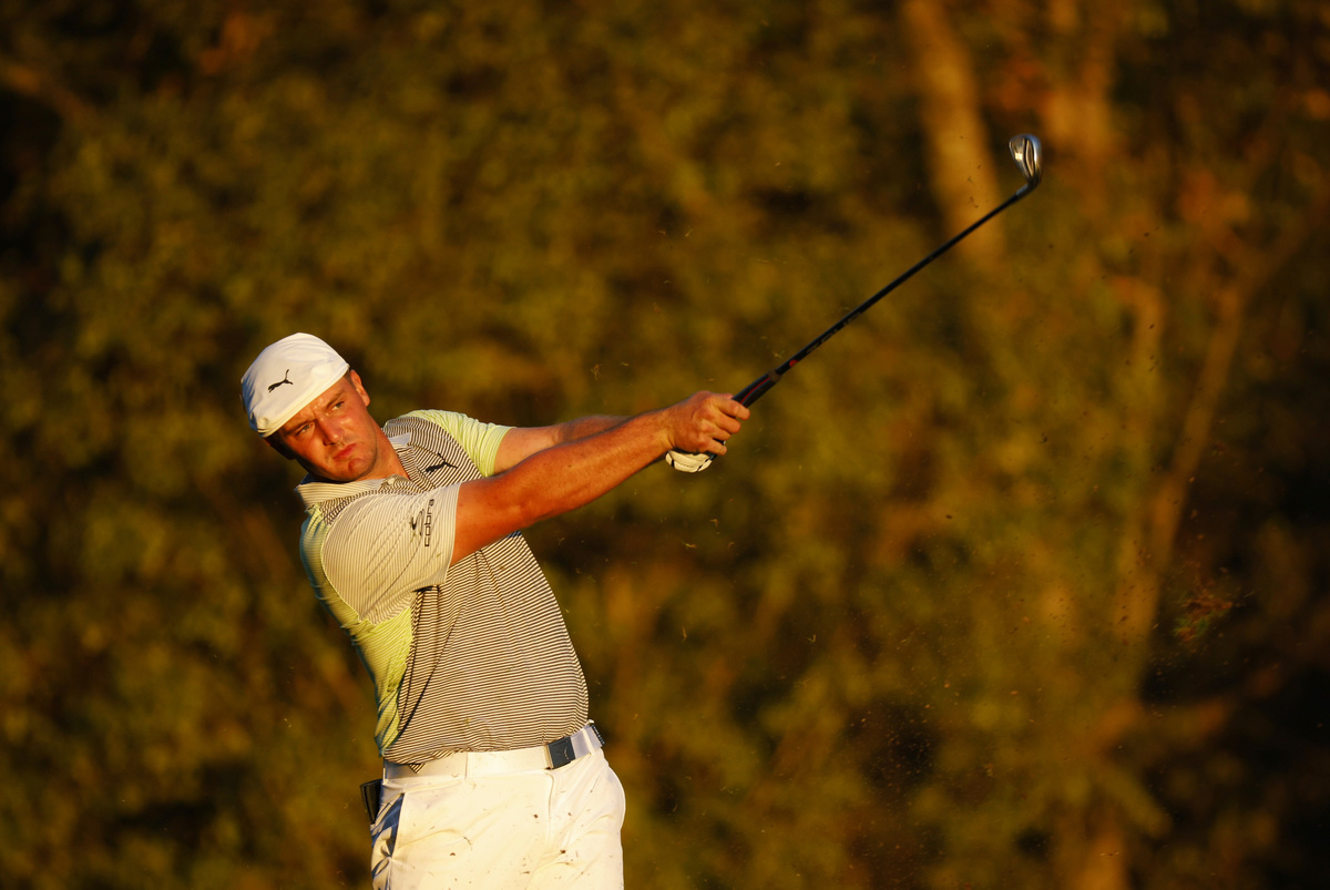 DeChambeau was three over par for the round after 12 holes, and one over overall when played was halted for the day in fading light.