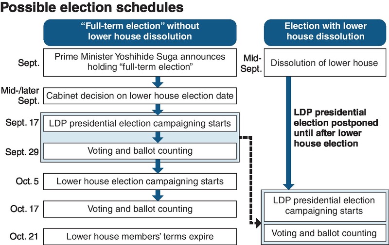 Environment Minister Shinjiro Koizumi, who has declared his support for the prime minister's re-election bid, told Suga Tuesday, "Postponing the presidential election would be the end for the prime minister and the LDP."