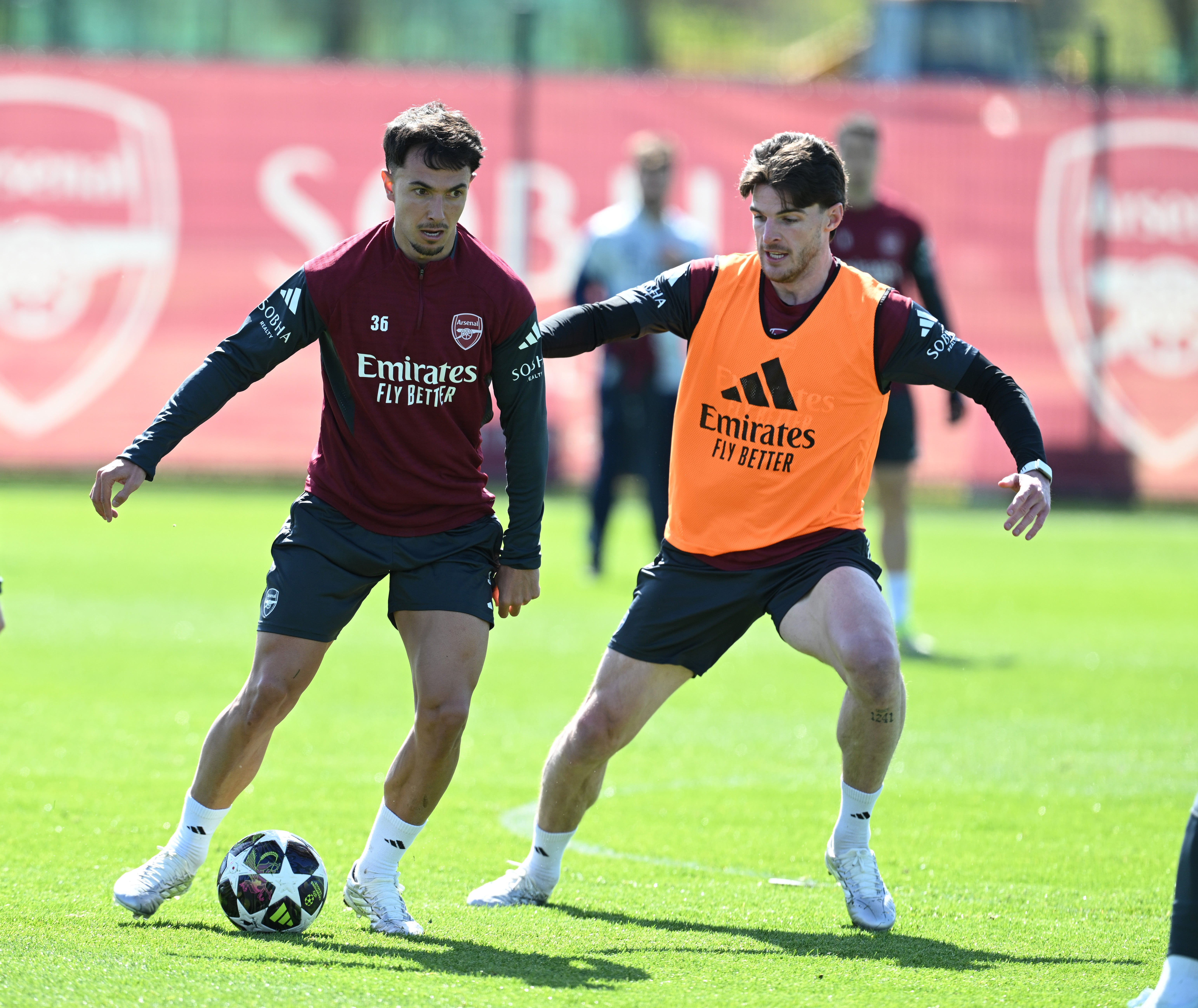 However, Bukayo Saka, who alongside Rice pulled out of England’s friendly against Japan last week, was not involved, with Jurrien Timber also absent from the flying pack.