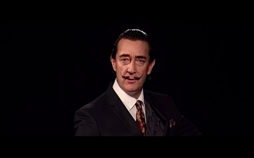 A visitor to The Dalí Museum in St Petersburg, Florida presses a doorbell beside a dark life-sized screen. A darkened figure wearing a dapper suit and sporting a pencil moustache slowly leaves his easel and comes toward her into the light.