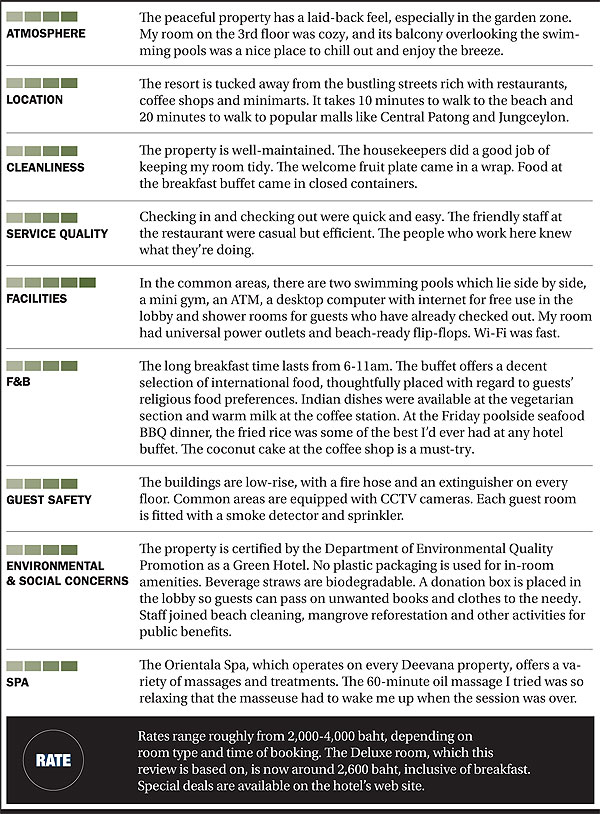 In Patong, one of Phuket's most built-up areas, only a small number of properties offer ample space and greenery. This 235-room resort is one of the rare few. The Deluxe rooms and Suites are located in the three-storey buildings which stand around the swimming pool, while the Superior rooms are in the single-storey buildings that spread out in the expansive garden zone.
