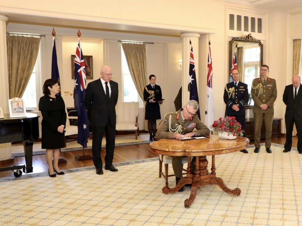 The condolence book was signed by defence chief General Angus Campbell, defence secretary Greg Moriarty, vice chief of the defence force Vice Admiral David Johnston, navy chief Vice Admiral Michael Noonan, army chief Lieutenant General Rick Burr, and air force chief Air Marshal Mel Hupfeld.