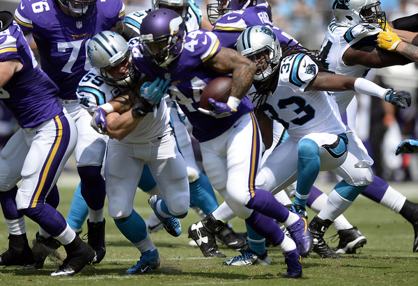 After two drives apiece, the Panthers had out-gained the Vikings 115 yards to nine.