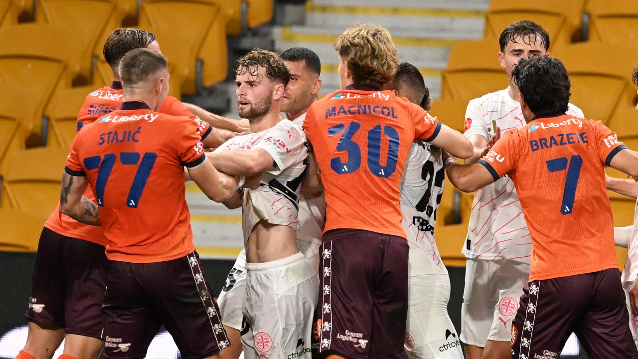 Friday's clash ended with fire and brimstone in stoppage time after Roar's George Vrakas won a penalty after a Nathaniel Atkinson challenge.