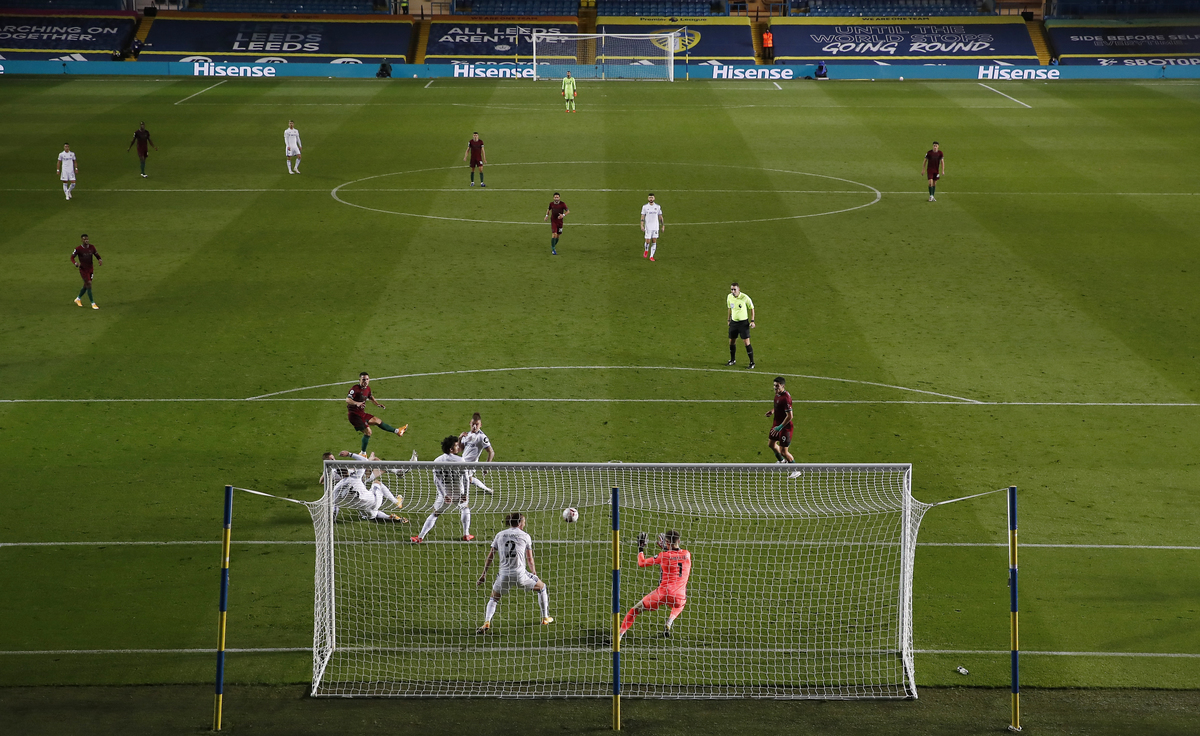 Leeds dominated possession in the opening half, firing crosses into the box at a variety of angles and threatening from set pieces without creating much in the way of clear-cut chances.
