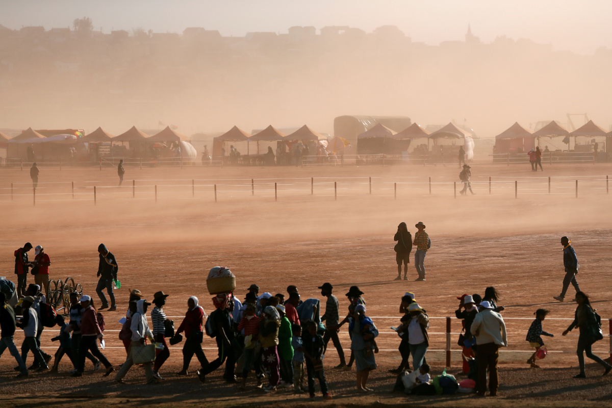 People are seen ahead of Pope Francis' arrival for a prayer vigil with youth at the Soamandrakizay Mess site in Antananarivo, Madagascar, September 7, 2019. REUTERS/Yara Nardi