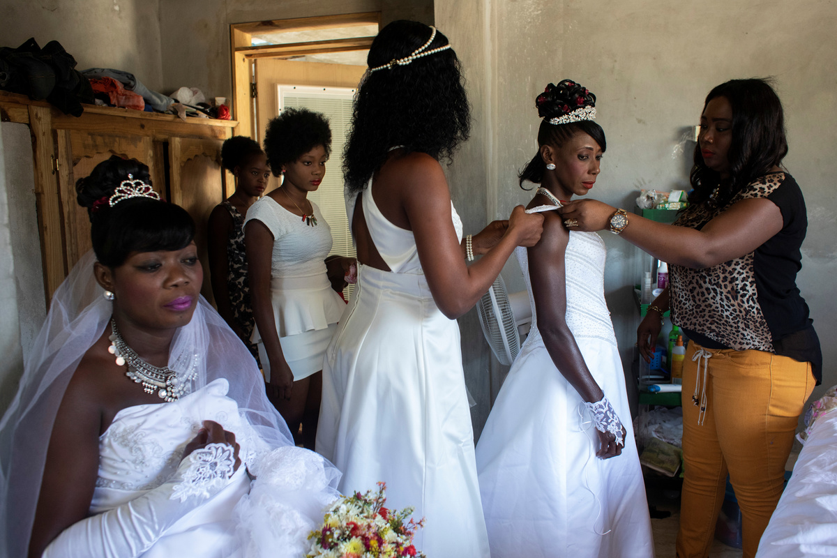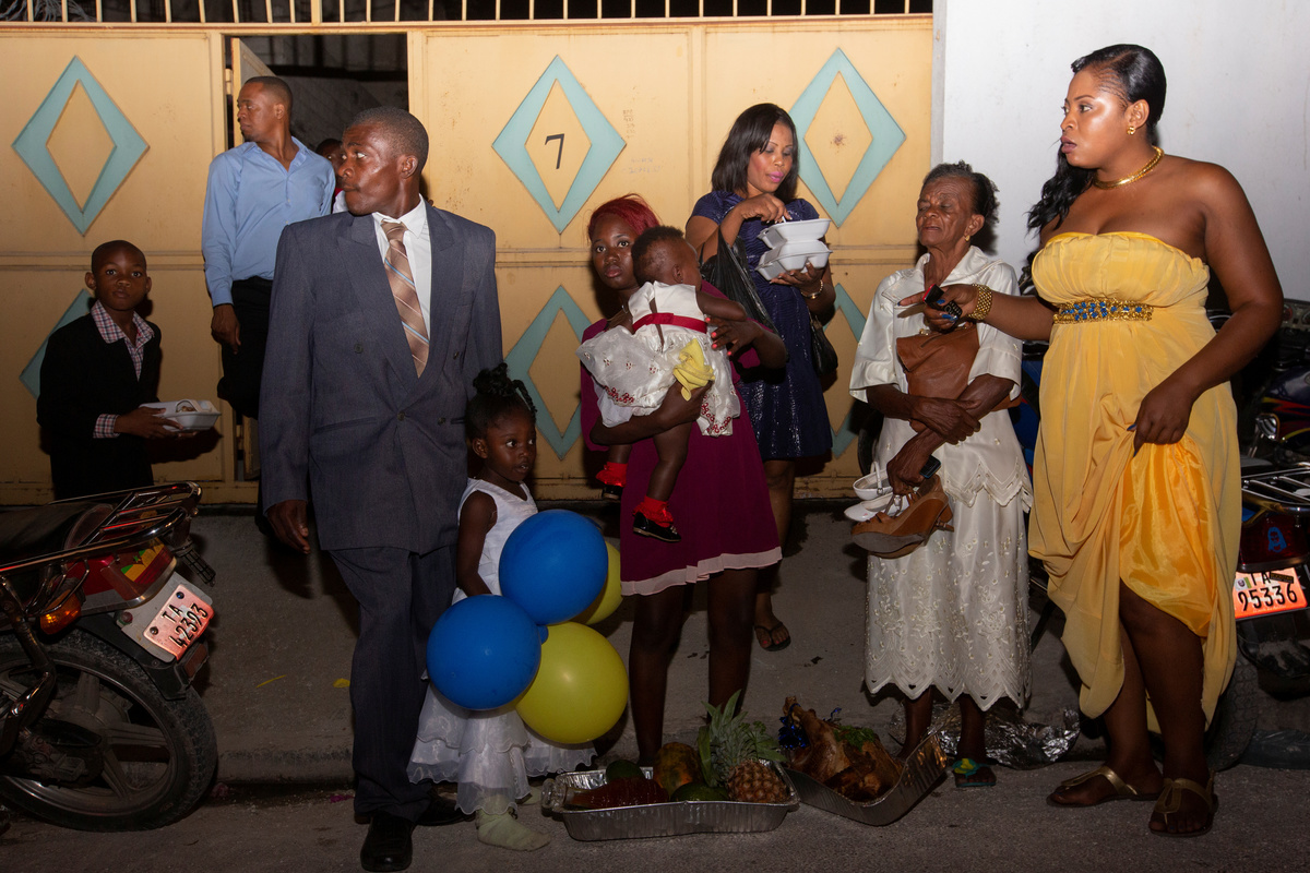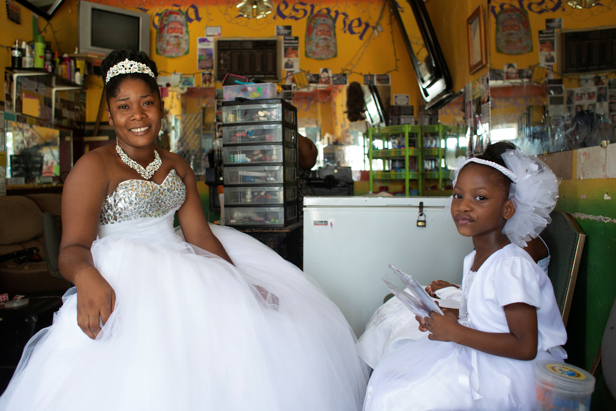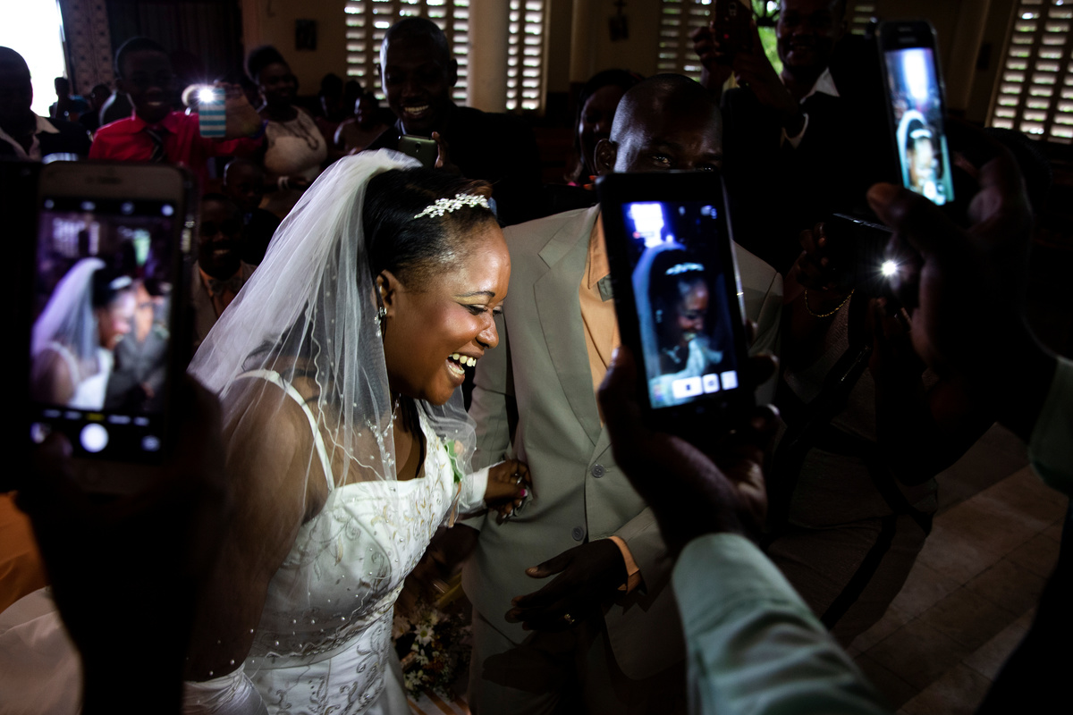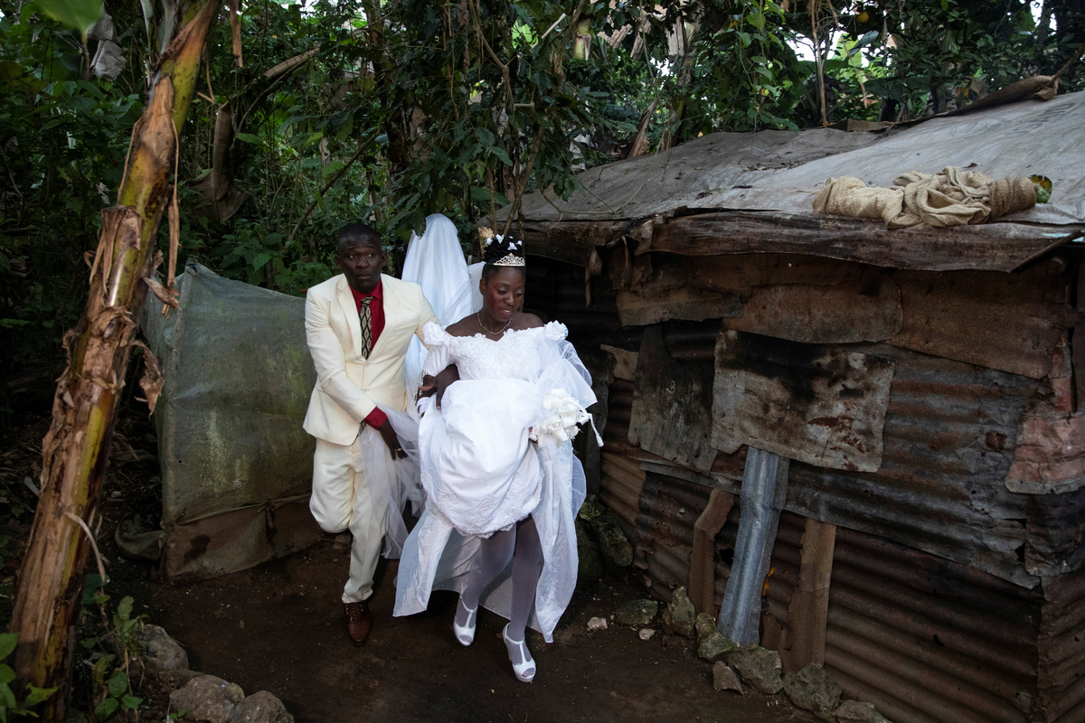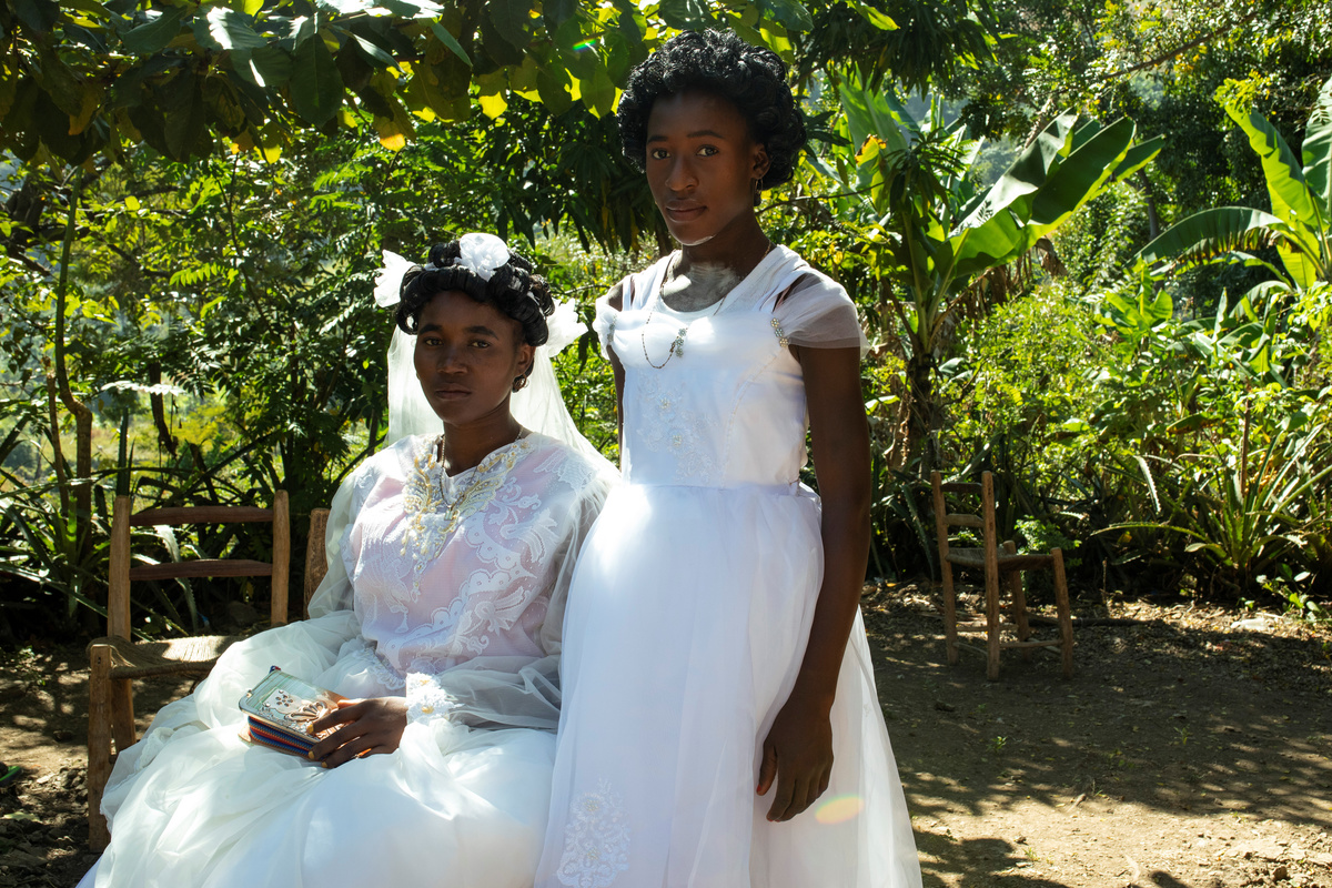 Musician Duckyns St-Eloi, who is known as 'Zikiki' sings to his bride Mirla-Samuelle Pierre as she enters the church with her father Pierre Obas on their wedding day at Eglise de l'Universite Adventiste d'Haiti, a church in Diquini, Carrefour, Haiti, December 28, 2017. Pierre and Zikiki wed in church, mainly to please Pierre's parents. But the theme of the wedding decoration was 'rastafari,' reflecting the culture of the dreadlocked groom. Like all but the wealthiest Haitians, they chose not to spend any money on a grand reception or honeymoon. "Instead, that same evening we went out to a nightclub," said Zikiki, "and we had a lot of fun together." REUTERS/Valerie Baeriswyl Dalina poses for a photograph next to her small bride on the day of her wedding, at a hair salon in Delmas, Port-au-Prince Arrondissement, Haiti, July 30, 2015. REUTERS/Valerie Baeriswyl Brides Roselene Saint Juste and Mireille Mathurin, who got married in a joint ceremony to cousins Sony Vernet and Herve Vernet, get ready on their wedding day in Mariani, Haiti, April 15, 2017. REUTERS/Valerie Baeriswyl Mauseline Greffin, a shopkeeper, has her eyebrows done by a friend on the day of her wedding to Favilson Pierre, a taxi driver, who she met at church, at a house belonging to Greffin's friend in Carrefour, Haiti, January 2, 2016. REUTERS/Valerie Baeriswyl Abydarlyne Jouth, poses for a photograph with her bridesmaids, Ketlove Sainfleur, Adline Jouthe, Tamas Jean Pierre, Marie Claudine Nozil during a fitting for Jouth's and Chelson Ermoza's African themed wedding, in Delmas, Port au Prince, Haiti, December 10, 2017. "We chose to get married like this because we wanted to get out of the traditional European wedding pattern. We wanted to be ourselves and propose another form of costume, another model of ceremony for married people in Haiti," said Jouth. REUTERS/Valerie Baeriswyl Renold St Hilaire, 56, a church friend of Beane Jean & Franck's, who are getting married, irons a wedding guest's dress, before Jean's and Franck's wedding, at her home in L'Asile, Haiti, April 14, 2018. REUTERS/Valerie Baeriswyl Edeline Philipe, 17, the announcer, who will announce the arrival of the bride as part of a Haitian wedding tradition, waits for Sherlyne Fernand, the bride, who works as a merchant, to arrive before making their way in a procession to the church, on the wedding day of Fernand and Imado Joinville, who works as a security guard, in Leogane Arrondissement, Haiti, October 28, 2017. The bridal procession in the church can include friends playing the part of a king and queen, while the bridesmaids and groomsmen often dress so similarly to the bride and groom that it can be difficult to define, from outside, who is actually getting wed. REUTERS/Valerie Baeriswyl Father of the bride Merilus Bonheur, who works as a forest ranger, leads his daughter Christela Bonheur, 29, and their relatives to church on the day of Christela's wedding to Jocithe Auguste, in Foret des Pins, Zone Mare Rouge, Haiti, January 14, 2017. "We used to talk on the phone when I went to school in Croix-des-Bouquets. He lived in the Dominican Republic. We spent three years together before he asked for my hand," Bonheur says about Auguste. REUTERS/Valerie Baeriswyl Joseph, a teacher, and Louimene Louis pose for a photograph with Midene Belantine, Louis's cousin and Benita Estima, Joseph's cousin, in the courtyard of a family friend's house before getting married in Bouli, Centre Department, Haiti, December 1, 2018. REUTERS/Valerie Baeriswyl Father Duportal, of the Catholic parish Boucan Carre, who is marrying Silvanes Joseph and Louimene Louis, listens to Louimene Louis's confessions, as part of a Haitian marriage tradition where both the bride and groom have to go to confession before getting married, in Bouli, Centre Department, Haiti, December 1, 2018. REUTERS/Valerie Baeriswyl Vanessa Dorsainvil and Wesley Desir are surrounded by their godparents during a couple's blessing at Shekinah Adventist Church, during their wedding day in Port-au-Prince, Haiti, August 2, 2015. REUTERS/Valerie Baeriswyl Anelia Marcelus, 36, and Claudel Francois, 38, exchange rings during their wedding ceremony at Salem Evangelical Baptist Church, Port-au-Prince Arrondissement, Haiti, May 28, 2016. REUTERS/Valerie Baeriswyl Julio and Dalina, who met while studying at the same university, kiss each other for the first time as husband and wife at a church in Delmas, Port-au-Prince, Haiti, July 30, 2015. REUTERS/Valerie Baeriswyl Iseleine Granvil, the bride, who works as a teacher, reacts as she is photographed by guests on their smartphones during her wedding day with Etienne Termidor, a carpenter, in Cap Haitien, Haiti, October 31, 2017. REUTERS/Valerie Baeriswyl Woodna Vernet, the godmother, wears a white dress as she and wedding guests at Mireille Mathurin and Herve Vernet's wedding, leave the church, in Mariani, Haiti, April 15, 2017. Mathurin and Vernet got married in a double wedding ceremony. The bridesmaids and groomsmen often dress so similarly to the bride and groom that it can be difficult to define, from outside, who is actually getting wed. REUTERS/Valerie Baeriswyl Guests load a generator onto a bus to be taken to Tatiana Delpeche and Markens Dorcius', who are both teachers, wedding venue on their wedding day in Liancourt, Artibonite, Haiti, November 18, 2017. A generator is an essential element for a wedding in Haiti, especially in the countryside, where some areas are not electrified. REUTERS/Valerie Baeriswyl Santhonax Toussaint, 25, and Luisemene Antoine, 22, return from the church where they got married, as they make their way into their wedding reception in Toussaint's family courtyard where upon arrival, their in-laws will welcome them by throwing holy water and rice to bless the wedding, in Thiotte, Sud-Est Department, Haiti, December 7, 2017. REUTERS/Valerie Baeriswyl Christella Bonheur, 29, sits down after marrying Jocithe Auguste, 30, on their wedding day at a ch