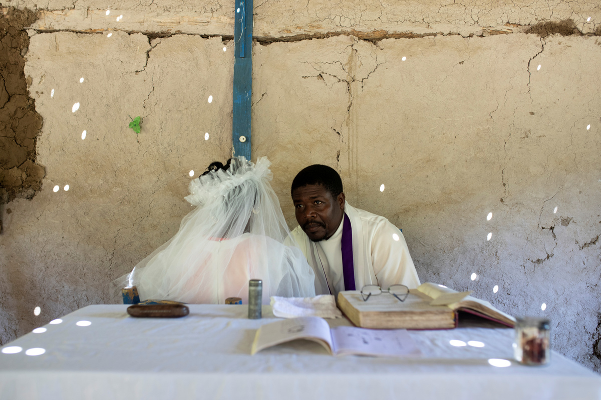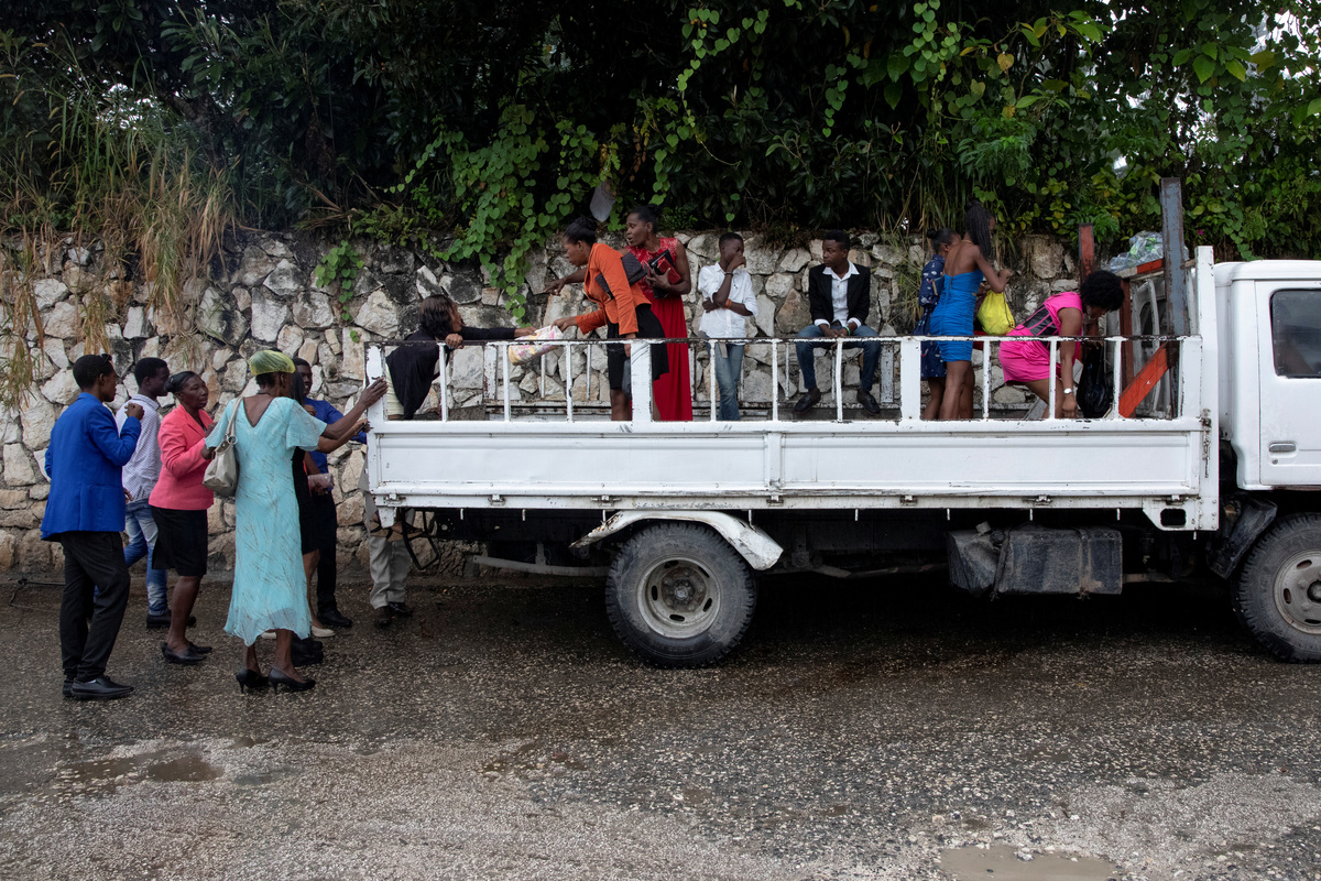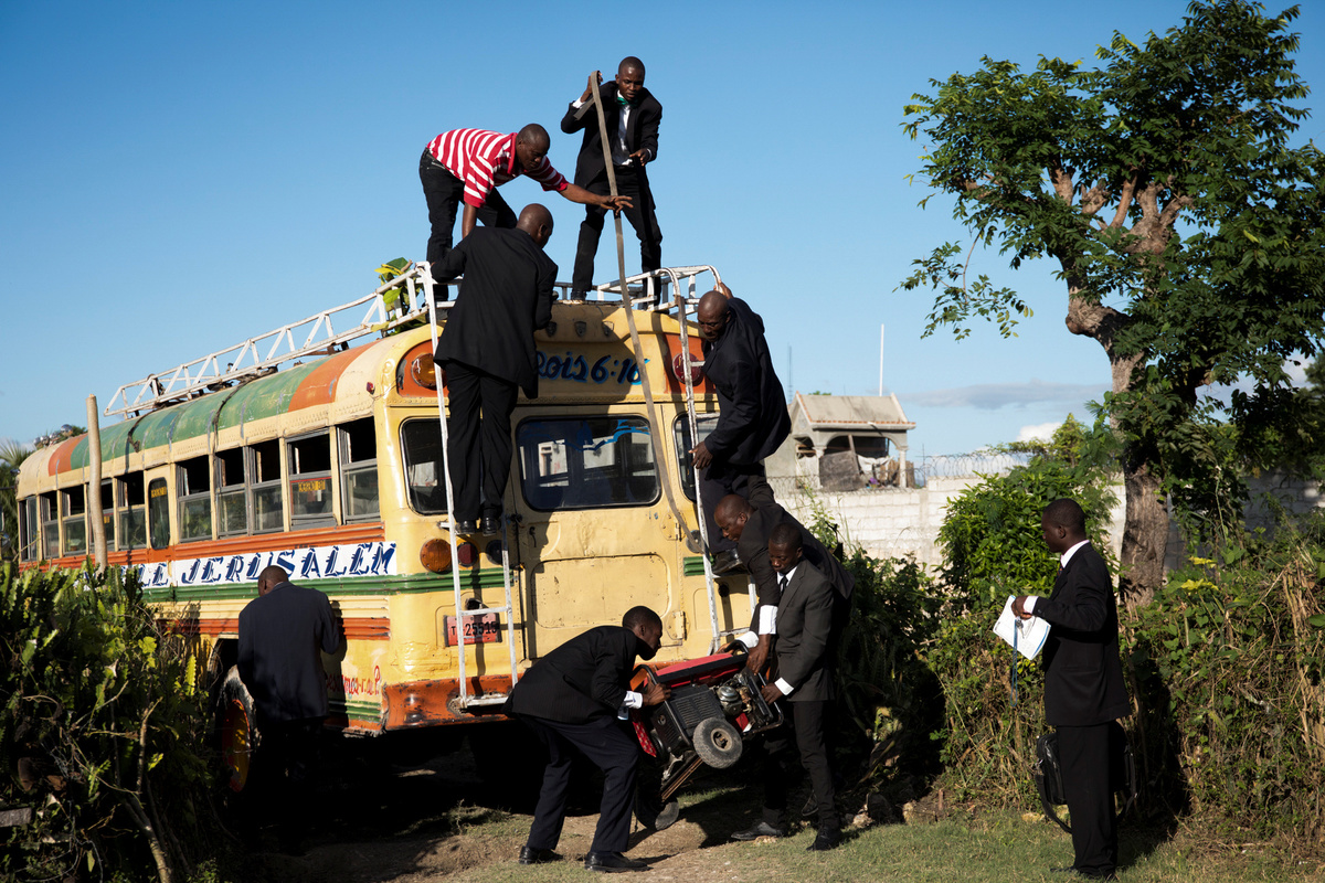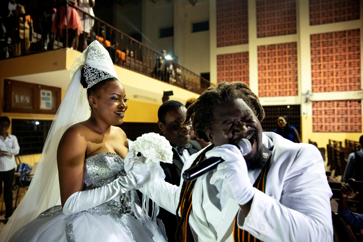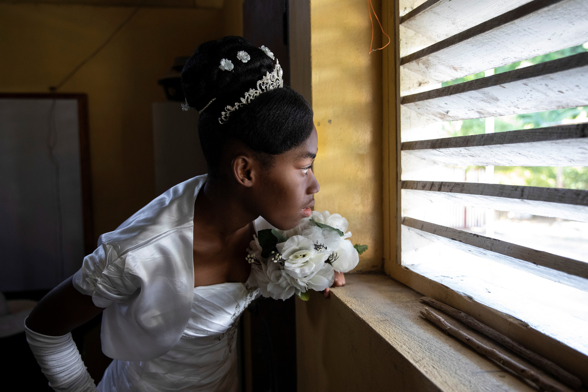 Musician Duckyns St-Eloi, who is known as 'Zikiki' sings to his bride Mirla-Samuelle Pierre as she enters the church with her father Pierre Obas on their wedding day at Eglise de l'Universite Adventiste d'Haiti, a church in Diquini, Carrefour, Haiti, December 28, 2017. Pierre and Zikiki wed in church, mainly to please Pierre's parents. But the theme of the wedding decoration was 'rastafari,' reflecting the culture of the dreadlocked groom. Like all but the wealthiest Haitians, they chose not to spend any money on a grand reception or honeymoon. "Instead, that same evening we went out to a nightclub," said Zikiki, "and we had a lot of fun together." REUTERS/Valerie Baeriswyl Dalina poses for a photograph next to her small bride on the day of her wedding, at a hair salon in Delmas, Port-au-Prince Arrondissement, Haiti, July 30, 2015. REUTERS/Valerie Baeriswyl Brides Roselene Saint Juste and Mireille Mathurin, who got married in a joint ceremony to cousins Sony Vernet and Herve Vernet, get ready on their wedding day in Mariani, Haiti, April 15, 2017. REUTERS/Valerie Baeriswyl Mauseline Greffin, a shopkeeper, has her eyebrows done by a friend on the day of her wedding to Favilson Pierre, a taxi driver, who she met at church, at a house belonging to Greffin's friend in Carrefour, Haiti, January 2, 2016. REUTERS/Valerie Baeriswyl Abydarlyne Jouth, poses for a photograph with her bridesmaids, Ketlove Sainfleur, Adline Jouthe, Tamas Jean Pierre, Marie Claudine Nozil during a fitting for Jouth's and Chelson Ermoza's African themed wedding, in Delmas, Port au Prince, Haiti, December 10, 2017. "We chose to get married like this because we wanted to get out of the traditional European wedding pattern. We wanted to be ourselves and propose another form of costume, another model of ceremony for married people in Haiti," said Jouth. REUTERS/Valerie Baeriswyl Renold St Hilaire, 56, a church friend of Beane Jean & Franck's, who are getting married, irons a wedding guest's dress, before Jean's and Franck's wedding, at her home in L'Asile, Haiti, April 14, 2018. REUTERS/Valerie Baeriswyl Edeline Philipe, 17, the announcer, who will announce the arrival of the bride as part of a Haitian wedding tradition, waits for Sherlyne Fernand, the bride, who works as a merchant, to arrive before making their way in a procession to the church, on the wedding day of Fernand and Imado Joinville, who works as a security guard, in Leogane Arrondissement, Haiti, October 28, 2017. The bridal procession in the church can include friends playing the part of a king and queen, while the bridesmaids and groomsmen often dress so similarly to the bride and groom that it can be difficult to define, from outside, who is actually getting wed. REUTERS/Valerie Baeriswyl Father of the bride Merilus Bonheur, who works as a forest ranger, leads his daughter Christela Bonheur, 29, and their relatives to church on the day of Christela's wedding to Jocithe Auguste, in Foret des Pins, Zone Mare Rouge, Haiti, January 14, 2017. "We used to talk on the phone when I went to school in Croix-des-Bouquets. He lived in the Dominican Republic. We spent three years together before he asked for my hand," Bonheur says about Auguste. REUTERS/Valerie Baeriswyl Joseph, a teacher, and Louimene Louis pose for a photograph with Midene Belantine, Louis's cousin and Benita Estima, Joseph's cousin, in the courtyard of a family friend's house before getting married in Bouli, Centre Department, Haiti, December 1, 2018. REUTERS/Valerie Baeriswyl Father Duportal, of the Catholic parish Boucan Carre, who is marrying Silvanes Joseph and Louimene Louis, listens to Louimene Louis's confessions, as part of a Haitian marriage tradition where both the bride and groom have to go to confession before getting married, in Bouli, Centre Department, Haiti, December 1, 2018. REUTERS/Valerie Baeriswyl Vanessa Dorsainvil and Wesley Desir are surrounded by their godparents during a couple's blessing at Shekinah Adventist Church, during their wedding day in Port-au-Prince, Haiti, August 2, 2015. REUTERS/Valerie Baeriswyl Anelia Marcelus, 36, and Claudel Francois, 38, exchange rings during their wedding ceremony at Salem Evangelical Baptist Church, Port-au-Prince Arrondissement, Haiti, May 28, 2016. REUTERS/Valerie Baeriswyl Julio and Dalina, who met while studying at the same university, kiss each other for the first time as husband and wife at a church in Delmas, Port-au-Prince, Haiti, July 30, 2015. REUTERS/Valerie Baeriswyl Iseleine Granvil, the bride, who works as a teacher, reacts as she is photographed by guests on their smartphones during her wedding day with Etienne Termidor, a carpenter, in Cap Haitien, Haiti, October 31, 2017. REUTERS/Valerie Baeriswyl Woodna Vernet, the godmother, wears a white dress as she and wedding guests at Mireille Mathurin and Herve Vernet's wedding, leave the church, in Mariani, Haiti, April 15, 2017. Mathurin and Vernet got married in a double wedding ceremony. The bridesmaids and groomsmen often dress so similarly to the bride and groom that it can be difficult to define, from outside, who is actually getting wed. REUTERS/Valerie Baeriswyl Guests load a generator onto a bus to be taken to Tatiana Delpeche and Markens Dorcius', who are both teachers, wedding venue on their wedding day in Liancourt, Artibonite, Haiti, November 18, 2017. A generator is an essential element for a wedding in Haiti, especially in the countryside, where some areas are not electrified. REUTERS/Valerie Baeriswyl Santhonax Toussaint, 25, and Luisemene Antoine, 22, return from the church where they got married, as they make their way into their wedding reception in Toussaint's family courtyard where upon arrival, their in-laws will welcome them by throwing holy water and rice to bless the wedding, in Thiotte, Sud-Est Department, Haiti, December 7, 2017. REUTERS/Valerie Baeriswyl Christella Bonheur, 29, sits down after marrying Jocithe Auguste, 30, on their wedding day at a ch