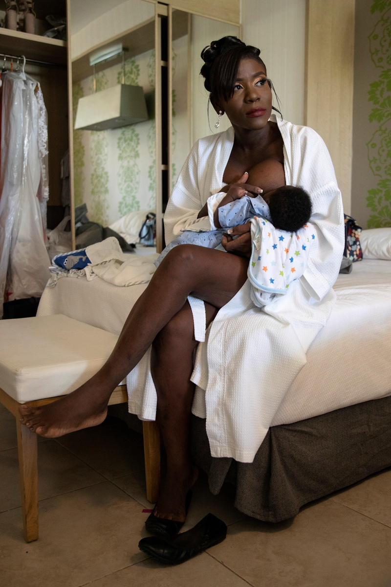 Johane Jean, 38, who works as a manager at a fast food restaurant, breastfeeds her one-month old son Jean Murat Darius, on the day of her wedding to Kilmite Darius, a mechanic, at a hotel paid for by Jean's cousin, a Haitian living in the United States, in Petion Ville, Port-au-Prince, Haiti, March 23, 2019. "I fell pregnant and, as we are both churchgoers, we decided to get married," said Jean who married Darius one month after giving birth and nursed her baby throughout the day. REUTERS/Valerie Baeriswyl