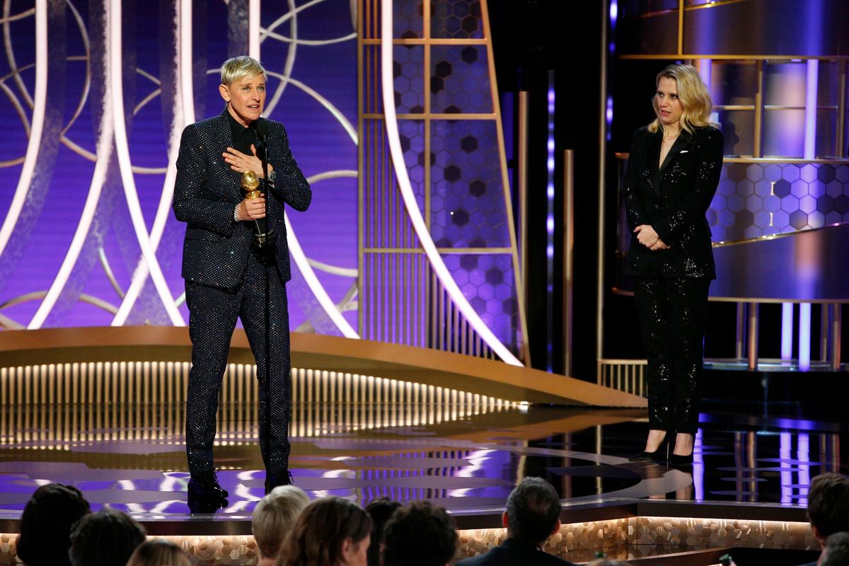 "Saturday Night Live" actress Kate McKinnon, in an introduction at the Globes, thanked DeGeneres for paving the way for gay people such as herself to be seen on television.