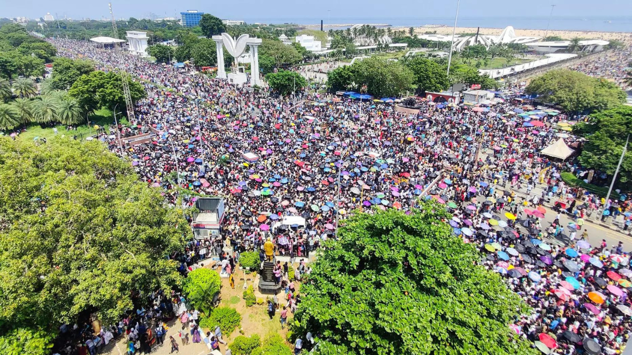 According to DMK leader TKS Elangovan, 15 lakh people had gathered at the Marina Beach on Sunday.