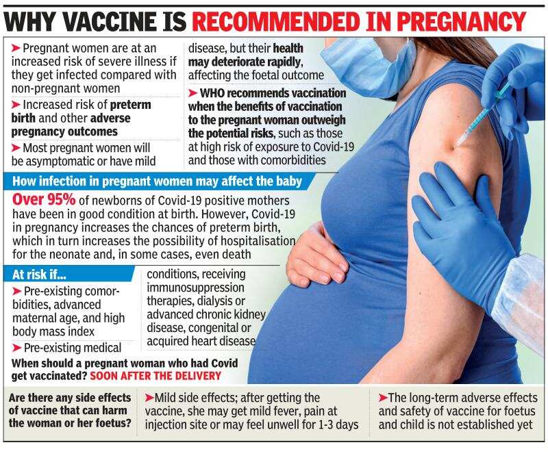 Covid vaccines have been administered to pregnant women in the US and Europe without reports of serious adverse events. On May 28, the National Technical Advisory Group on Immunisation also said that the benefits of Covid vaccinations in pregnant women outweighed the risks. It, however, added that all beneficiaries should be fully informed that the long-term adverse reactions and safety of the vaccine for the foetus were not established yet.