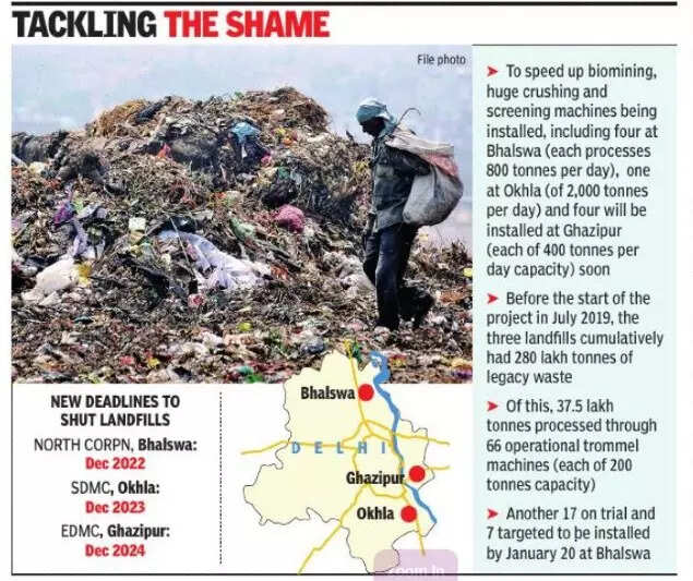 After the civic bodies claimed that they would be unable to meet the initial deadlines of June 2022 for Bhalswa, March 2023 for Okhla and December 2023 for Ghazipur landfill sites, the chief secretary in October asked them to submit revised deadlines. The new deadlines are December 2022 for Bhalswa, December 2023 for Okhla and December 2024 for Ghazipur.