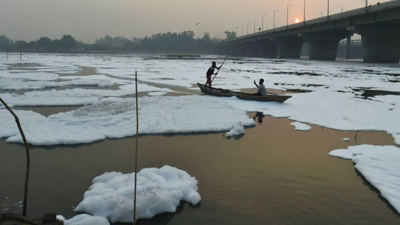 NEW DELHI: Amid criticism over the formation of foam in the Yamuna — a sign of its hazardous water quality — the Delhi government on Tuesday deployed 15 boats to remove the froth with the help of ropes.