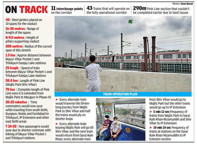 NEW DELHI: After a wait of two and a half years, the ‘missing link’ of Delhi Metro’s Pink Line (Majlis Park-Shiv Vihar) was finally bridged at Trilokpuri on Friday, making it the longest operational corridor of the rail network.