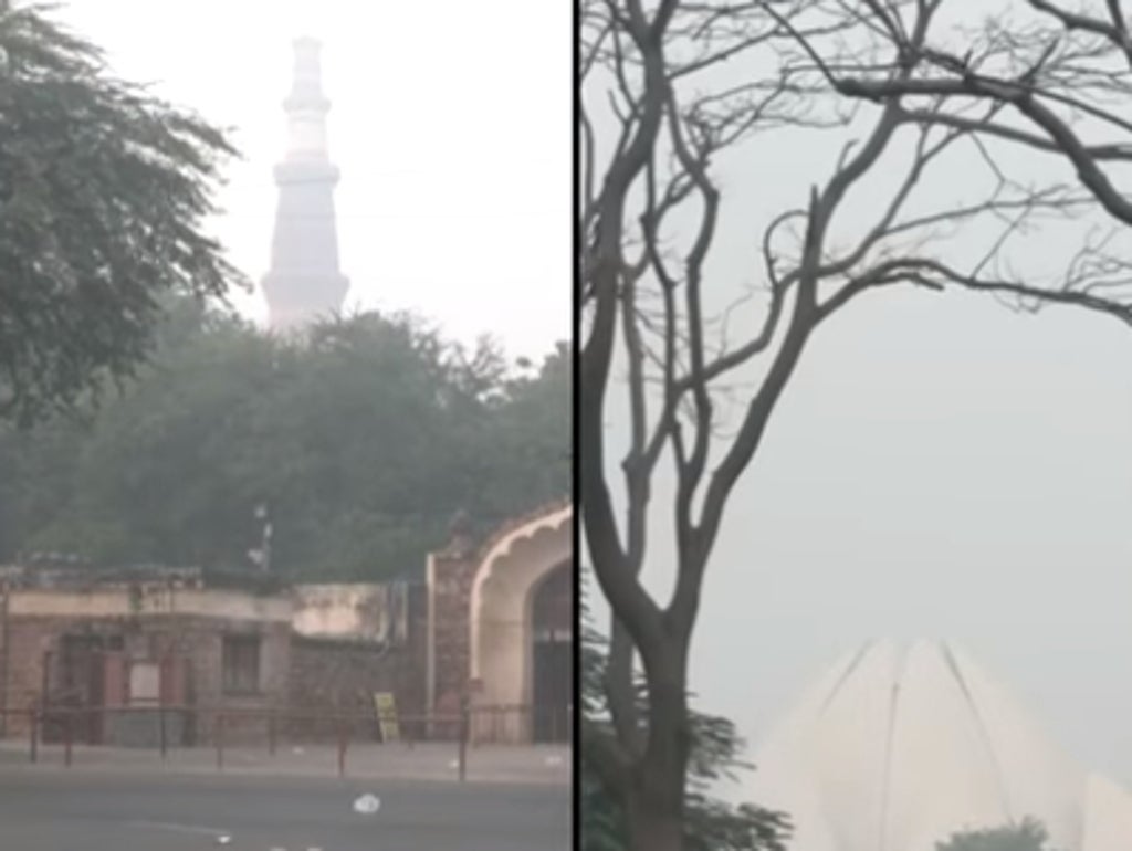 Footage shared online shows Delhi’s historic monuments shrouded in toxic smog.