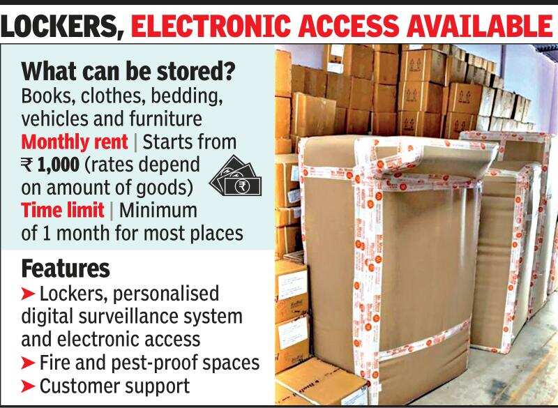 .“The demand for rented spaces to store goods has grown. Businesses affected by the pandemic need such facilities. Items from an entire household can be stored for Rs 3,000-Rs 4,000 a month. People can keep cars in such places for Rs 2,500-Rs 4,000 a month. The business has just picked up in India. But it is a 39 billion USD business in the USA,” said Pratyush Pandey, warehousing, industrial and logistics, Anarock Property Consultants.