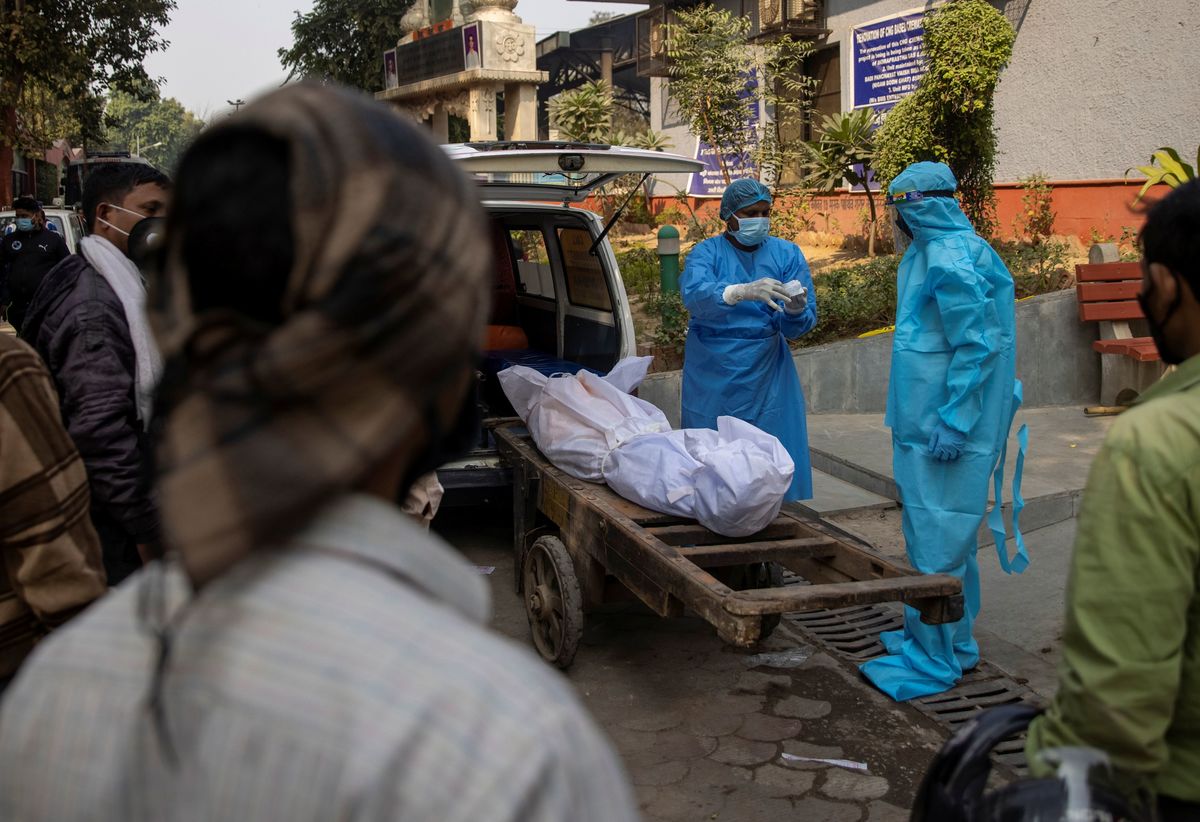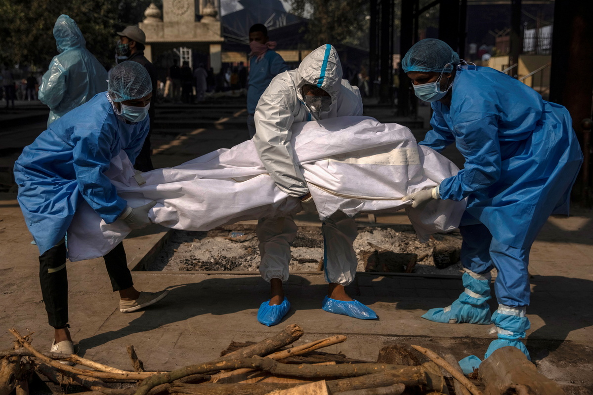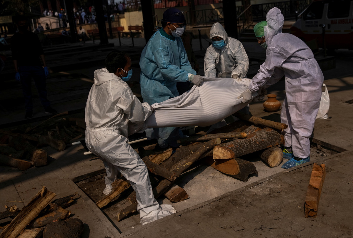 At a river-side crematorium in east Delhi located near a hospital, relatives of people who had succumbed to the disease waited as bodies burned on funeral pyres placed side by side.