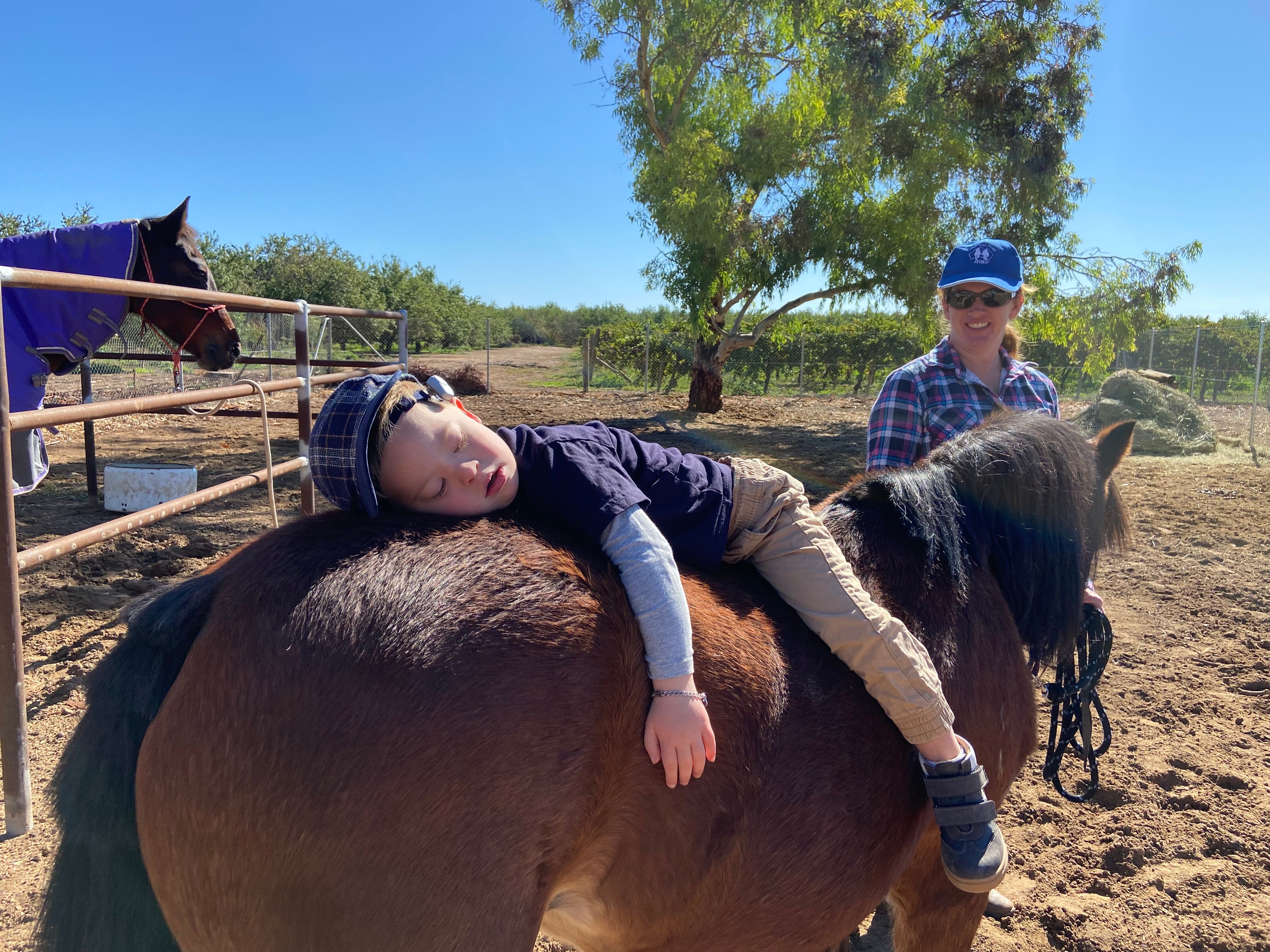 The preschooler has Down syndrome and has been having sessions with the pony as part of an equine-assisted learning program that has opened in his regional community, in the Riverland of South Australia.