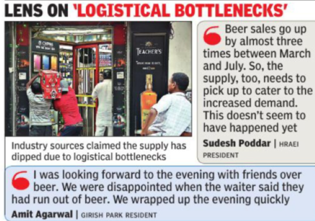 Some restaurants rued that beer sales have dropped to almost half due to the non-availability of the leading brands. A restaurant owner said the supply of three top selling brands had been slow over the past few weeks. “With their favourite brands missing, most have either been staying away from drinks or ordering hard liquor. But with the temperature shooting, beer has no real substitute for many. It is leading to a loss for us,” he said.