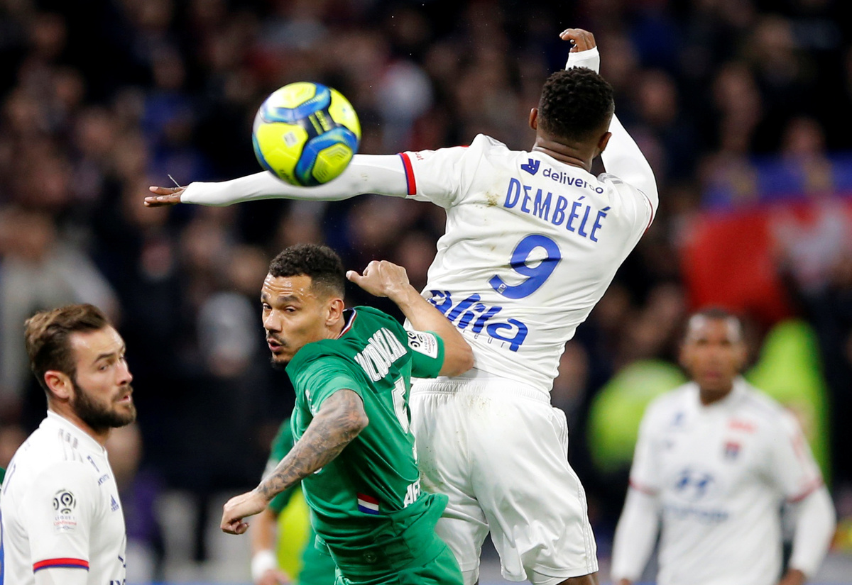 Dembele put the home side ahead with a glancing header in the 27th minute after Lucas Tousart floated over a free kick from the left and sealed the win with a stoppage time penalty.
