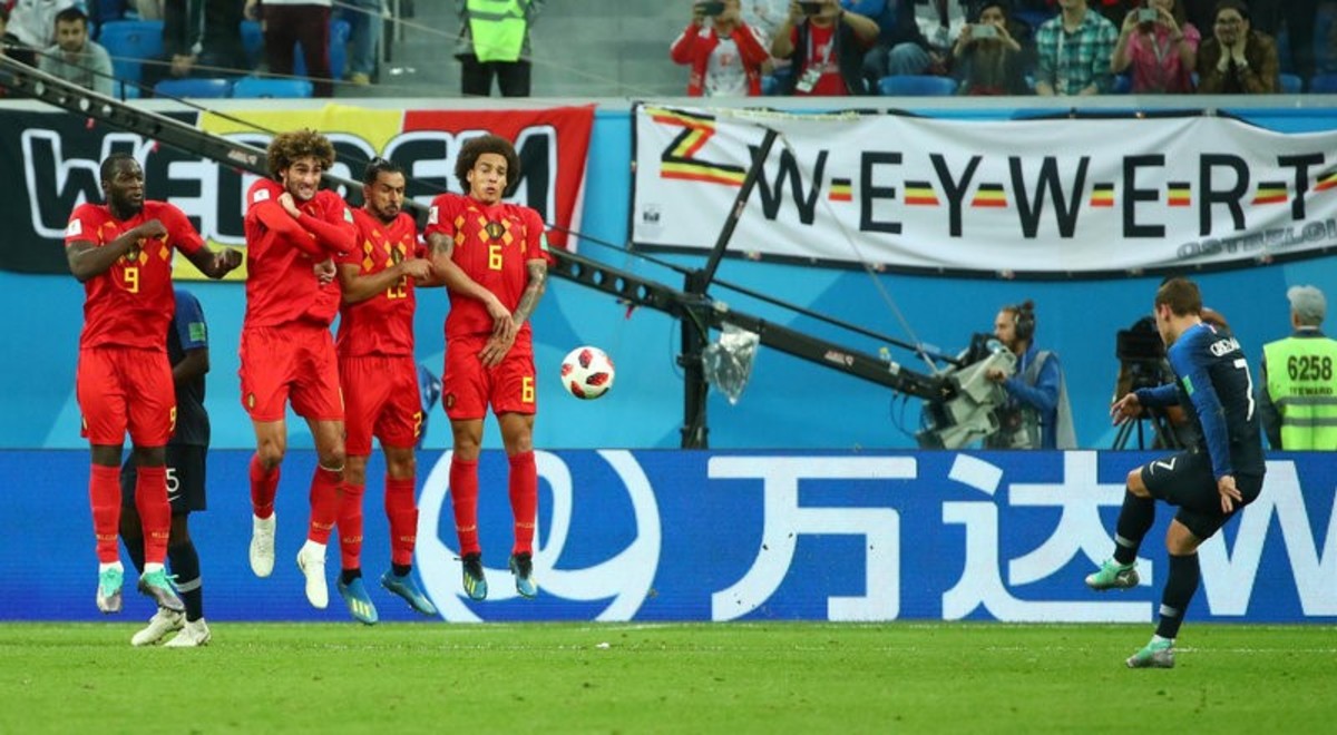 Soccer Football - World Cup - Semi Final - France v Belgium - Saint Petersburg Stadium, Saint Petersburg, Russia - July 10, 2018 Belgium's Kevin De Bruyne shoots at goal REUTERS/Dylan MartinezSoccer Football - World Cup - Semi Final - France v Belgium - Saint Petersburg Stadium, Saint Petersburg, Russia - July 10, 2018 Belgium's Kevin De Bruyne in action with France's Benjamin Pavard REUTERS/Dylan MartinezSoccer Football - World Cup - Semi Final - France v Belgium - Saint Petersburg Stadium, Saint Petersburg, Russia - July 10, 2018 Belgium's Marouane Fellaini in action with France's Paul Pogba REUTERS/Dylan MartinezSoccer Football - World Cup - Semi Final - France v Belgium - Saint Petersburg Stadium, Saint Petersburg, Russia - July 10, 2018 Belgium's Toby Alderweireld gestures after a challenge on France's Blaise Matuidi REUTERS/Michael DalderSoccer Football - World Cup - Semi Final - France v Belgium - Saint Petersburg Stadium, Saint Petersburg, Russia - July 10, 2018 France's Hugo Lloris in action REUTERS/Anton VaganovSoccer Football - World Cup - Semi Final - France v Belgium - Saint Petersburg Stadium, Saint Petersburg, Russia - July 10, 2018 France's Samuel Umtiti scores their first goal REUTERS/Dylan MartinezSoccer Football - World Cup - Semi Final - France v Belgium - Saint Petersburg Stadium, Saint Petersburg, Russia - July 10, 2018 France's Samuel Umtiti celebrates scoring their first goal REUTERS/Lee SmithSoccer Football - World Cup - Semi Final - France v Belgium - Saint Petersburg Stadium, Saint Petersburg, Russia - July 10, 2018 Belgium's Marouane Fellaini in action with France's Paul Pogba REUTERS/Max RossiSoccer Football - World Cup - Semi Final - France v Belgium - Saint Petersburg Stadium, Saint Petersburg, Russia - July 10, 2018 France's Raphael Varane in action with Belgium's Romelu Lukaku REUTERS/Dylan MartinezSoccer Football - World Cup - Semi Final - France v Belgium - Saint Petersburg Stadium, Saint Petersburg, Russia - July 10, 2018 Belgium's Eden Hazard in action with France's Paul Pogba REUTERS/Toru HanaiSoccer Football - World Cup - Semi Final - France v Belgium - Saint Petersburg Stadium, Saint Petersburg, Russia - July 10, 2018 Belgium's Eden Hazard in action with France's Paul Pogba, Benjamin Pavard and Antoine Griezmann REUTERS/Sergio PerezSoccer Football - World Cup - Semi Final - France v Belgium - Saint Petersburg Stadium, Saint Petersburg, Russia - July 10, 2018 France's Samuel Umtiti miskicks a clearance and Belgium's Romelu Lukaku could not control the ball REUTERS/Lee SmithSoccer Football - World Cup - Semi Final - France v Belgium - Saint Petersburg Stadium, Saint Petersburg, Russia - July 10, 2018 Belgium's Romelu Lukaku, Marouane Fellaini, Nacer Chadli and Axel Witsel jump in the wall to defend a free kick from France's Antoine Griezmann REUTERS/Michael DalderSoccer Football - World Cup - Semi Final - France v Belgium - Saint Petersburg Stadium, Saint Petersburg, Russia - July 10, 2018 Belgium's Thibaut Courtois makes a save from France's Benjamin Pavard REUTERS/Anton VaganovSoccer Football - World Cup - Semi Final - France v Belgium - Saint Petersburg Stadium, Saint Petersburg, Russia - July 10, 2018 France's Kylian Mbappe in action with Belgium's Mousa Dembele REUTERS/Henry RomeroSoccer Football - World Cup - Semi Final - France v Belgium - Saint Petersburg Stadium, Saint Petersburg, Russia - July 10, 2018 France's Kylian Mbappe in action with Belgium's Nacer Chadli REUTERS/Sergio PerezSoccer Football - World Cup - Semi Final - France v Belgium - Saint Petersburg Stadium, Saint Petersburg, Russia - July 10, 2018 France's Lucas Hernandez in action with Belgium's Kevin De Bruyne REUTERS/Lee SmithSoccer Football - World Cup - Semi Final - France v Belgium - Saint Petersburg Stadium, Saint Petersburg, Russia - July 10, 2018 France's Benjamin Pavard has a shot saved by Belgium's Thibaut Courtois REUTERS/Max Rossi