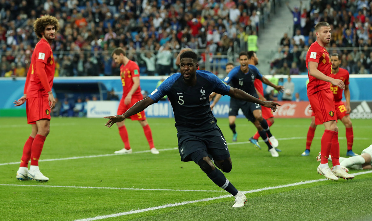 From Griezmann's corner, Umtiti beat Marouane Fellaini at the near post and powered a header home to put France ahead.
