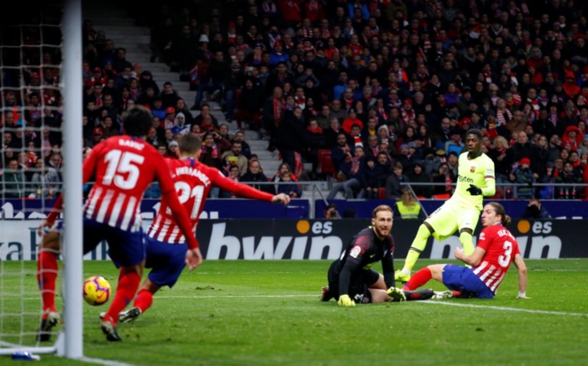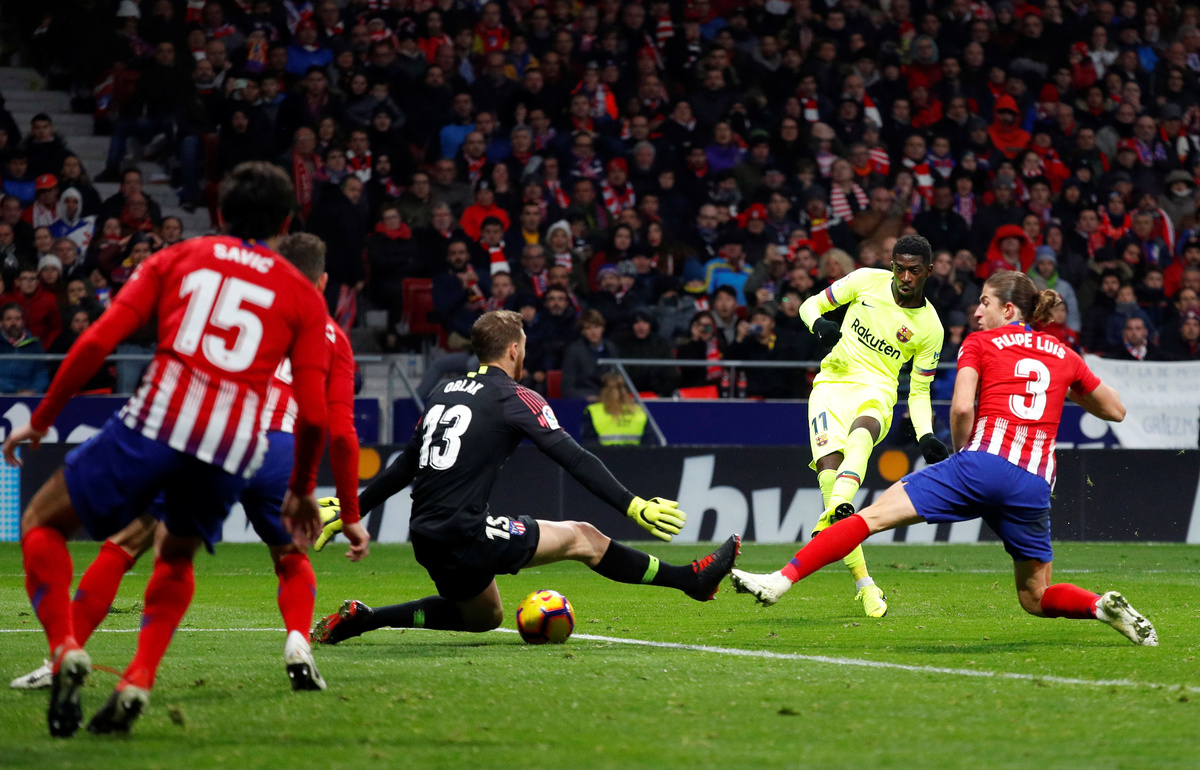 MADRID (Reuters) - Ousmane Dembele's 90th-minute strike rescued Barcelona a point at Atletico Madrid in a 1-1 draw on Saturday that kept the Catalans top of La Liga.