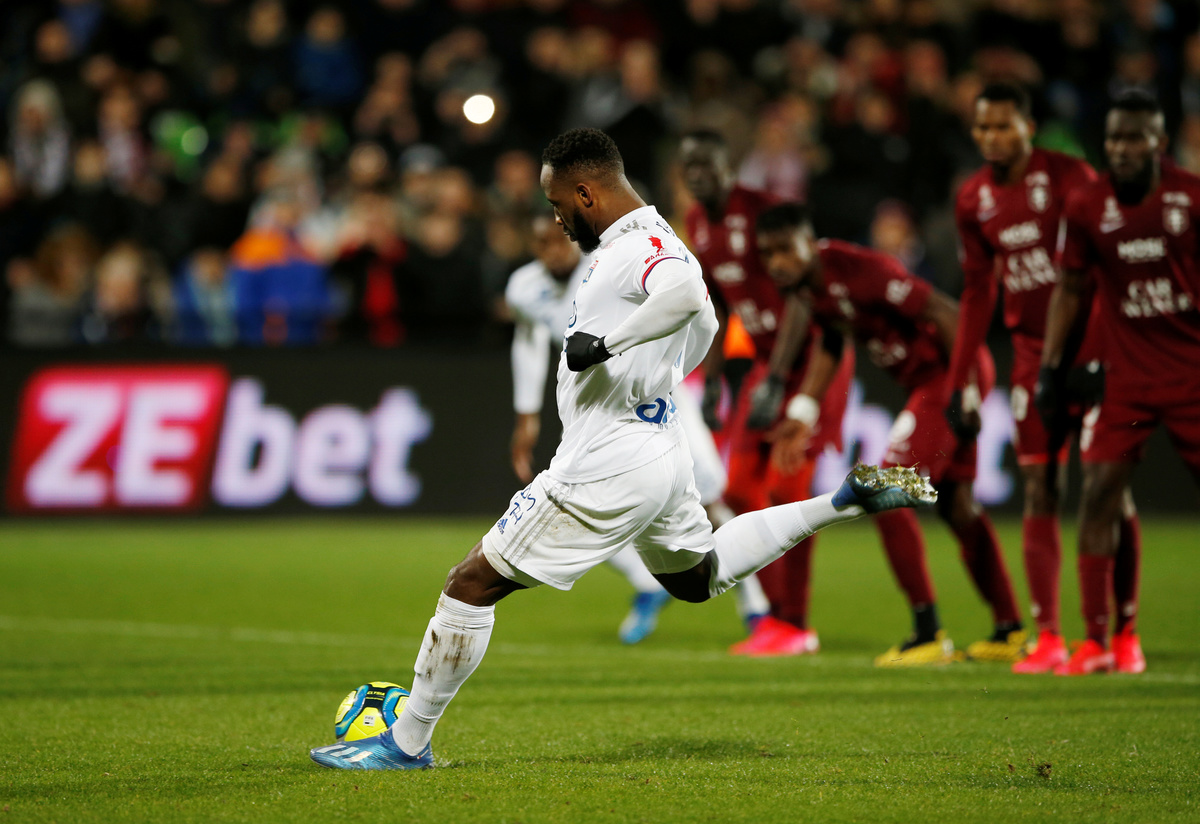 Maxwel Cornet had initially taken the spot kick which was blocked but referee Eric Wattellier ordered it to be retaken because keeper Alexandre Oukidja was off his goal line.