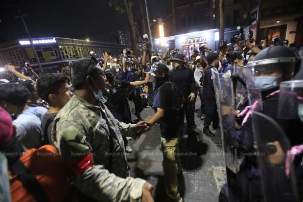 Besides releasing their leaders, the protesters insisted on the three demands they have mentioned in previous protests: the resignation of Prime Minister Prayut Chan-o-cha, charter change and reform of the monarchy.