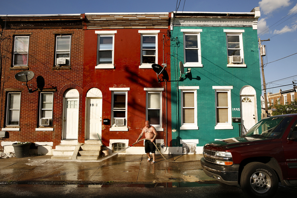 A few blocks away, off Kensington Avenue, Dave Adcox, a burly stay-at-home dad with a skull tattoo on his chest, washed down the sidewalk in front of his house. Using a wrench, he had connected a hose to the corner fire hydrant.