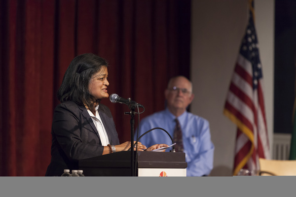 The "State of OUR Union" program at the National Press Club Tuesday is a gesture to "resist this racism and put forward our own progressive vision for our beloved country," Jayapal said.