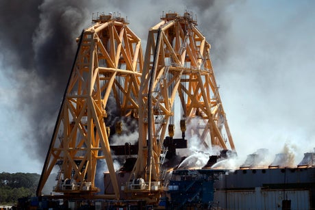 Engineers inspecting the Golden Ray determined it was safe to continue demolition work for the first time since the wreck caught fire May 14 and burned for several hours. Inspectors are still assessing whether parts of the hull were weakened by the fire, Himes said, and will adjust plans if necessary before remaining sections are cut away from the ship and lifted for removal.