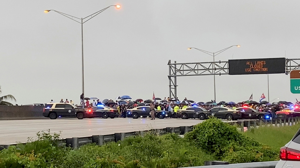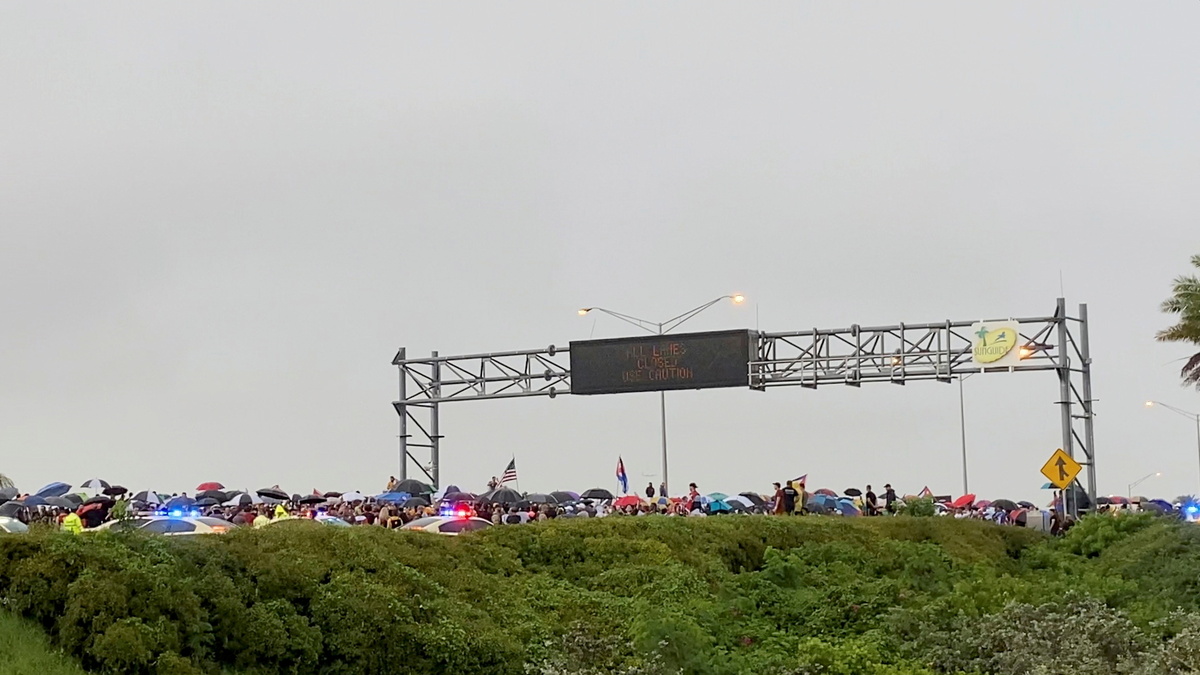 "The roadway remains shut down due to protesters. We have deployed additional resources to assist with re-opening," Florida Highway Patrol spokesman Lieutenant Alex Camacho said in an email on Tuesday evening.