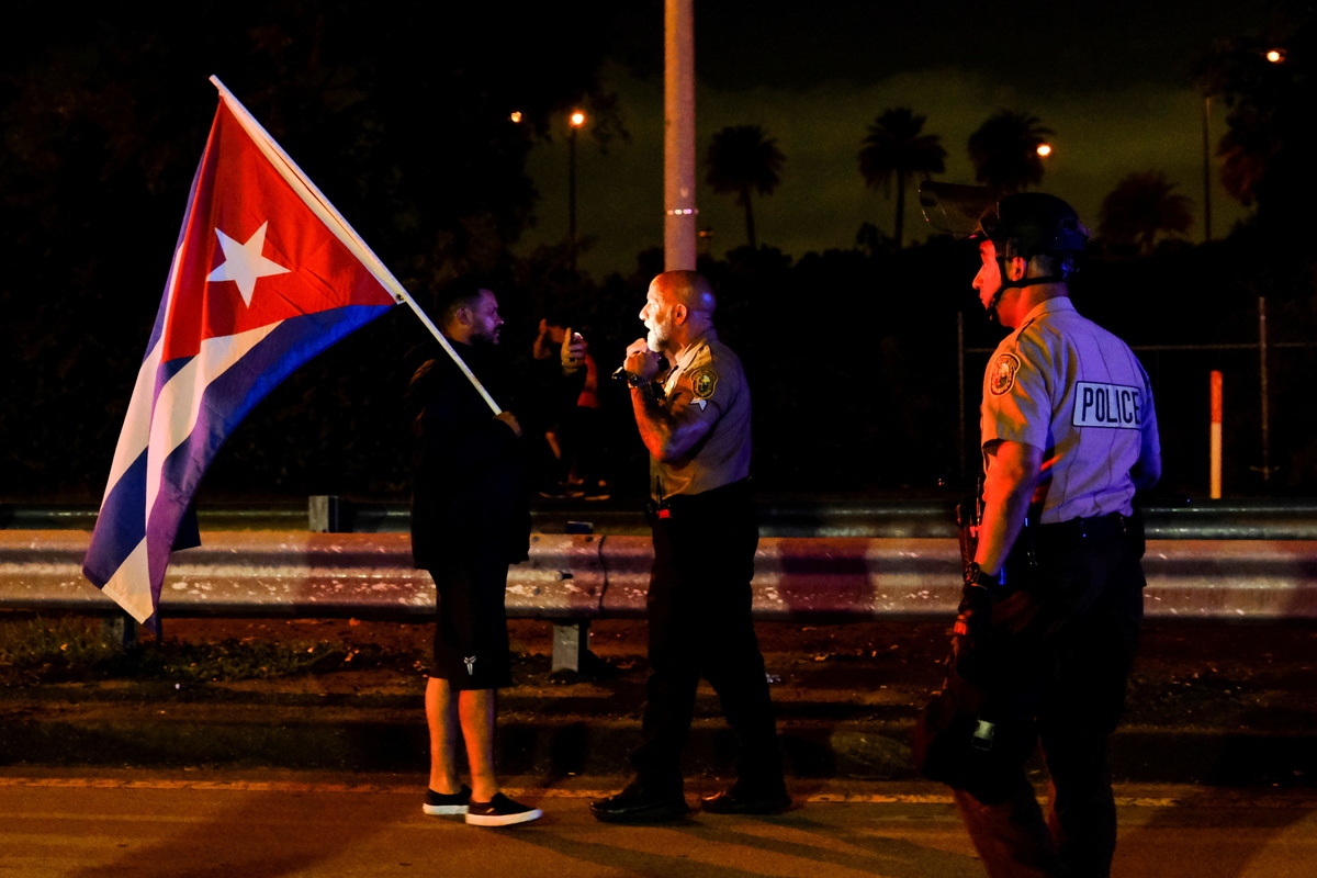 The South Florida demonstrators sought to replicate the protests by thousands of Cubans on Sunday who denounced a deep economic crisis, shortages of basic goods and power outages in the largest showing of unrest in decades.