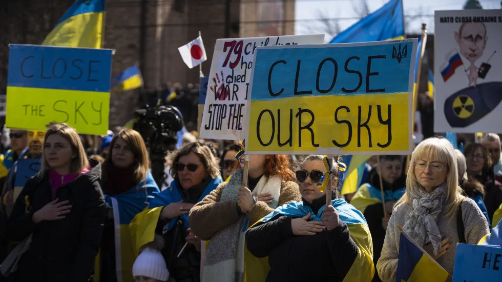 Hundreds gathered again in Ukrainian Village on Sunday and urged President Joe Biden to support the establishment of a no-fly zone over Ukraine as Russian airstrikes continue to pummel the country.