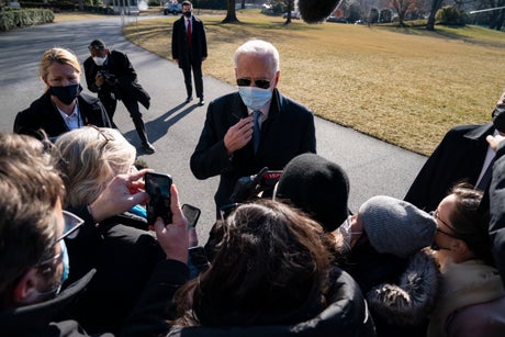 “We’re going to talk about the state of the economy, the recovery package. We’re going talk a little bit, God willing, about infrastructure down the road, and also about the minimum wage,” Biden said at the start of the meeting.