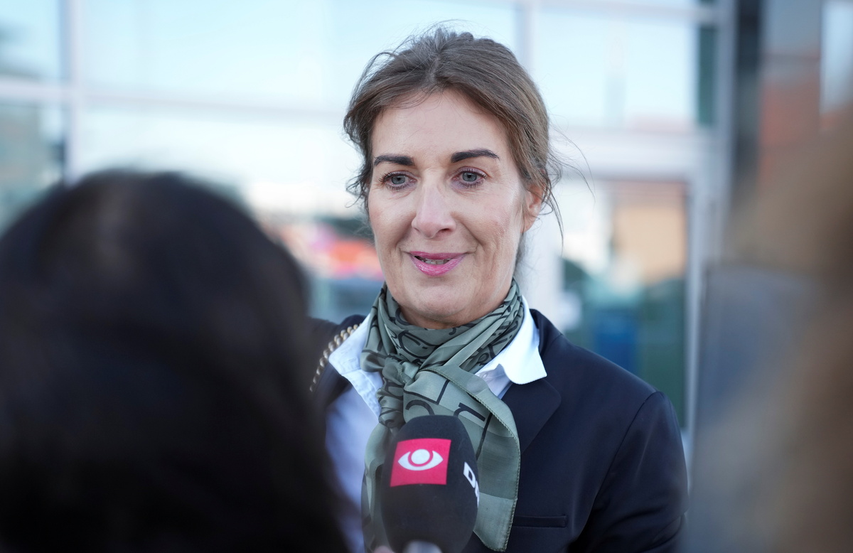 Attorney Mette Grith Stage, who represents one of three women that have been repatriated to Denmark from Syria, speaks with the media as she arrives for a hearing at a court in Esbjerg, Denmark October 7, 2021. Claus Fisker/Ritzau Scanpix/via REUTERS