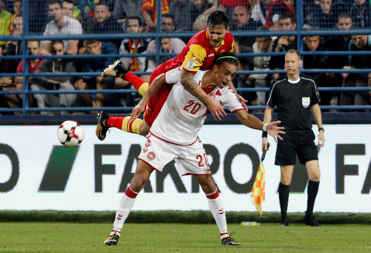 Soccer Football - 2018 World Cup Qualifications - Europe - Montenegro vs Denmark - Podgorica City Stadium, Podgorica, Montenegro - October 5, 2017 Denmark's Yussuf Poulsen in action REUTERS/Stevo Vasiljevic