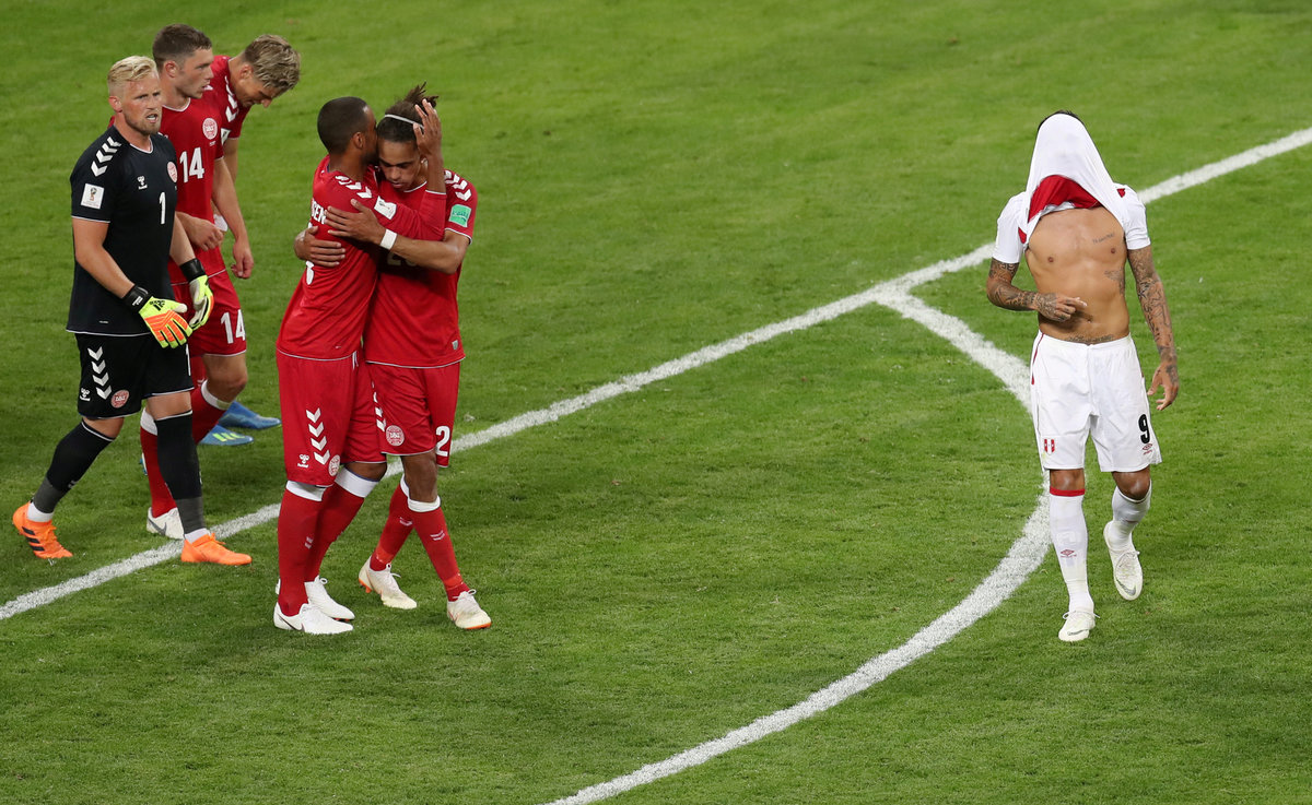 The Denmark midfield looked all at sea against Peru's fast and slick short-passing game and they were forced to change tactics.