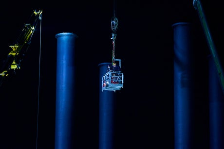 Jutland region police said the 46-year-old man was performing maintenance work on the sculpture, titled “Elia,” and was nearing the top of the 32-meter-high (105-feet-high) column when the crane operator hoisting him up lost radio contact late Tuesday afternoon.