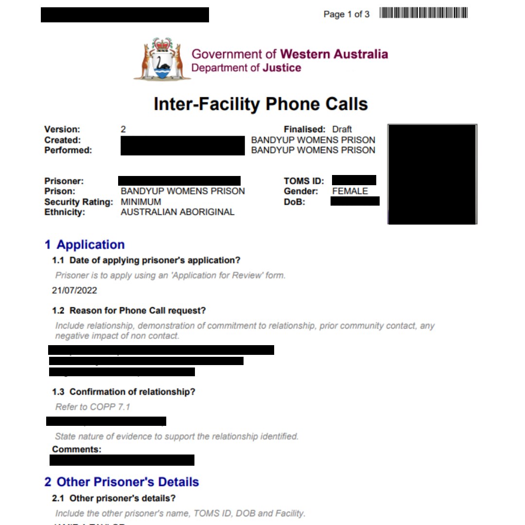 The Department of Justice said an employee at Bandyup Women's Prison was facilitating approval for an inter-facility telephone call with Albany Regional Prison between family members but selected the wrong distribution list.