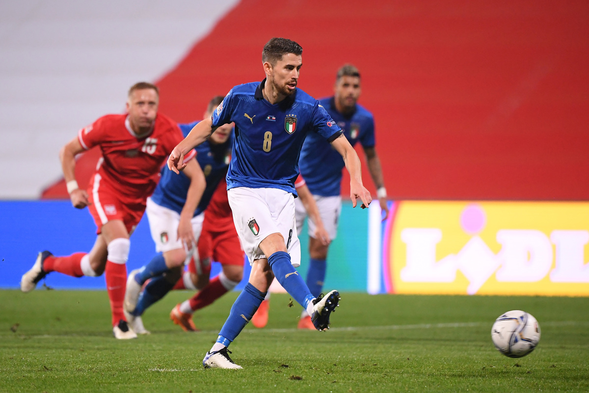 Jorginho put Italy in front with a 27th-minute penalty and substitute Domenico Berardi, playing at home ground of his club Sassuolo, made the game safe in the 84th minute as the hosts extended their unbeaten run to 21 games.