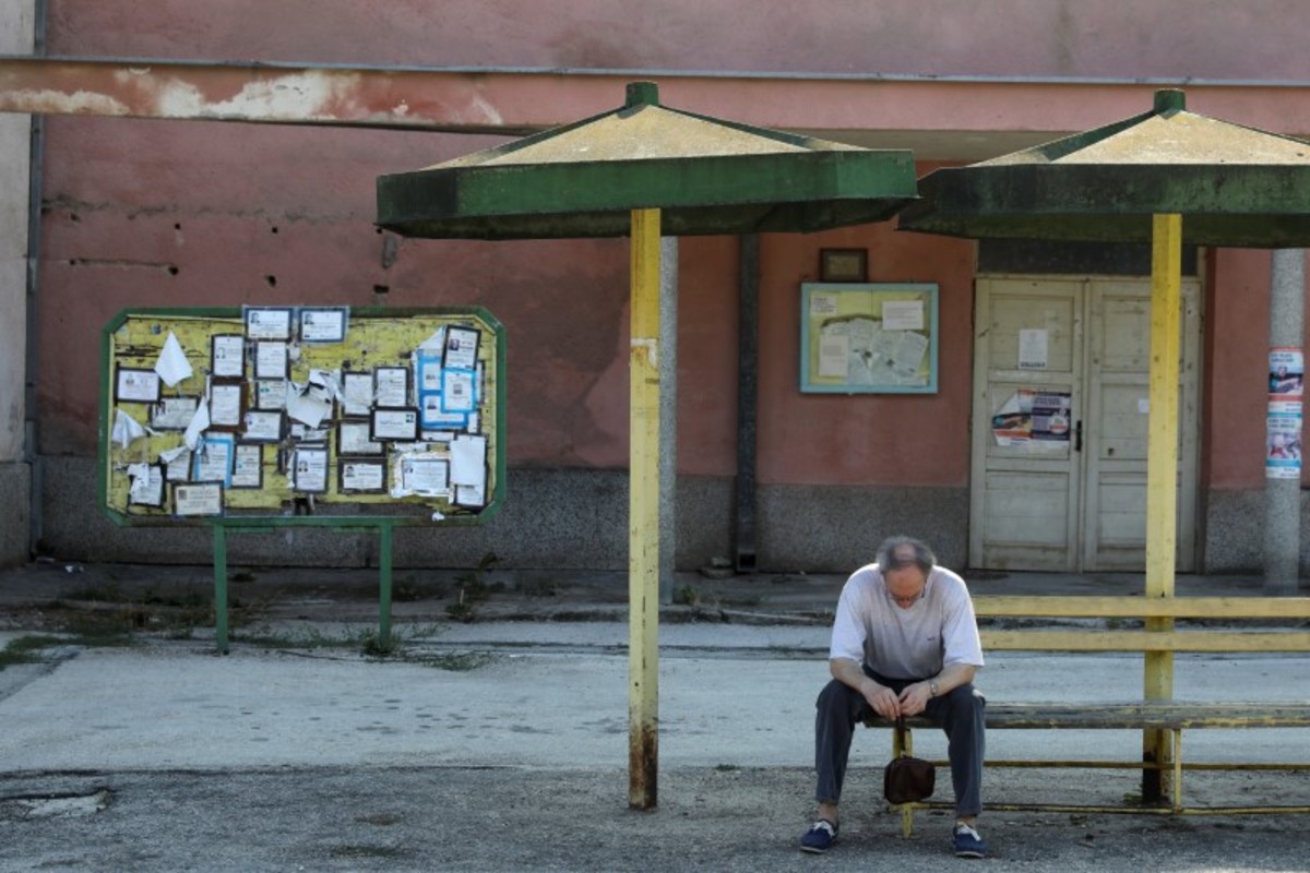 Death notices are seen on a notice board as a man sits at a bus station in the village of Kalna, near the south-eastern town of Knjazevac, Serbia, August 16, 2016. REUTERS/Marko Djurica