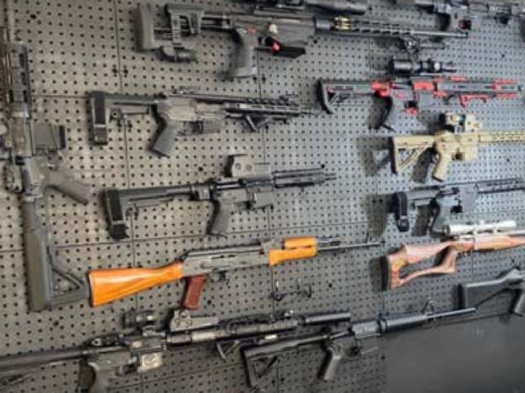 Investigators said they found at least 16 unregistered assault weapons and 13 illegal silencers, while the various credentials - including "four FBI patches that could be sewn onto a uniform or chest” - were alleged to be in a locked box in the house.