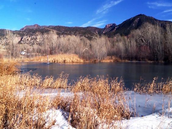 The boy fell through the ice in the town of New Harmony, north of Saint George.