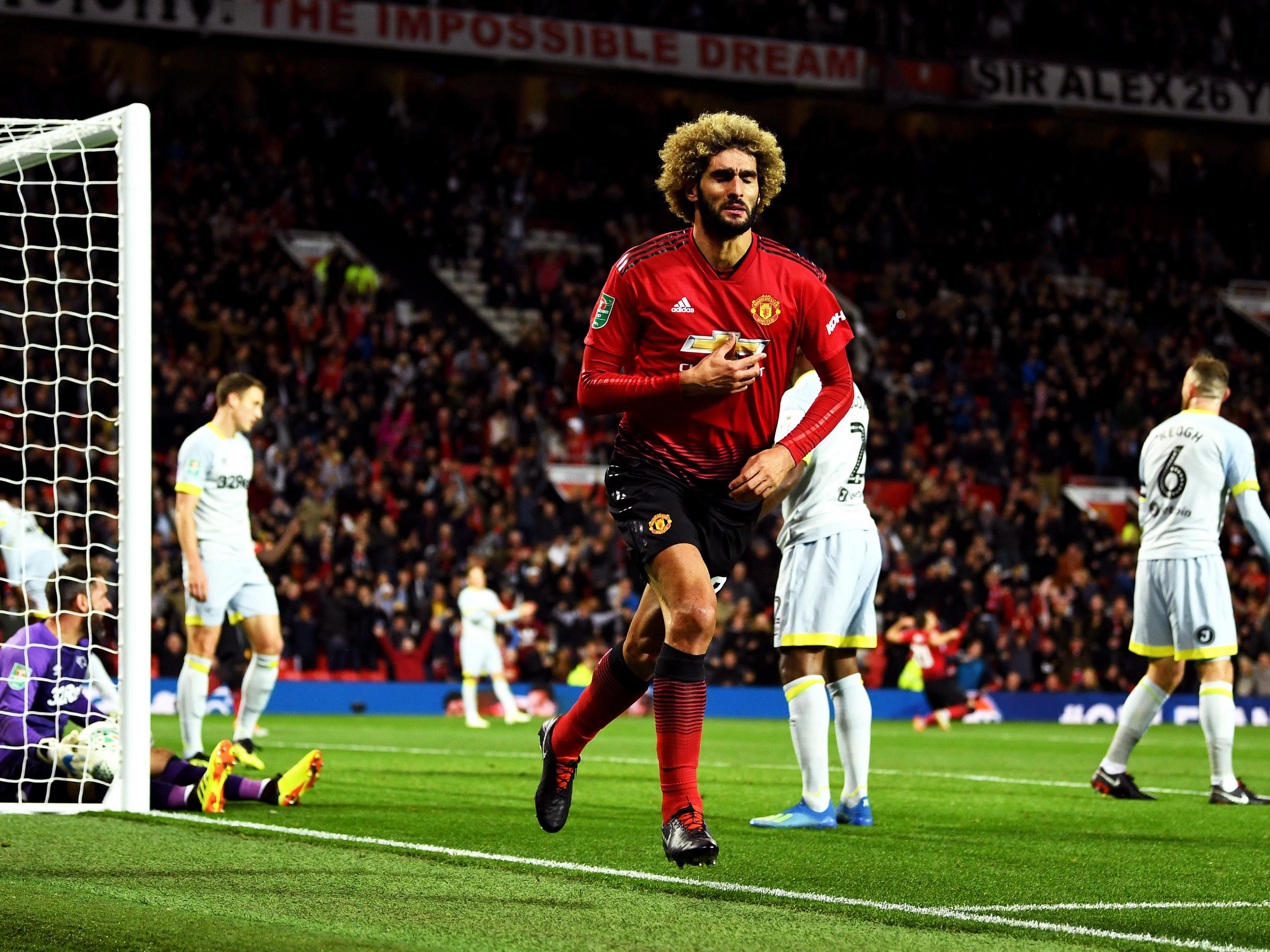 In the fifth minute of added-on time, Fellaini did what he could not in those laboured late stages against and rose at the far post to score, emphatically forcing Diogo Dalot’s cross past Scott Carson.